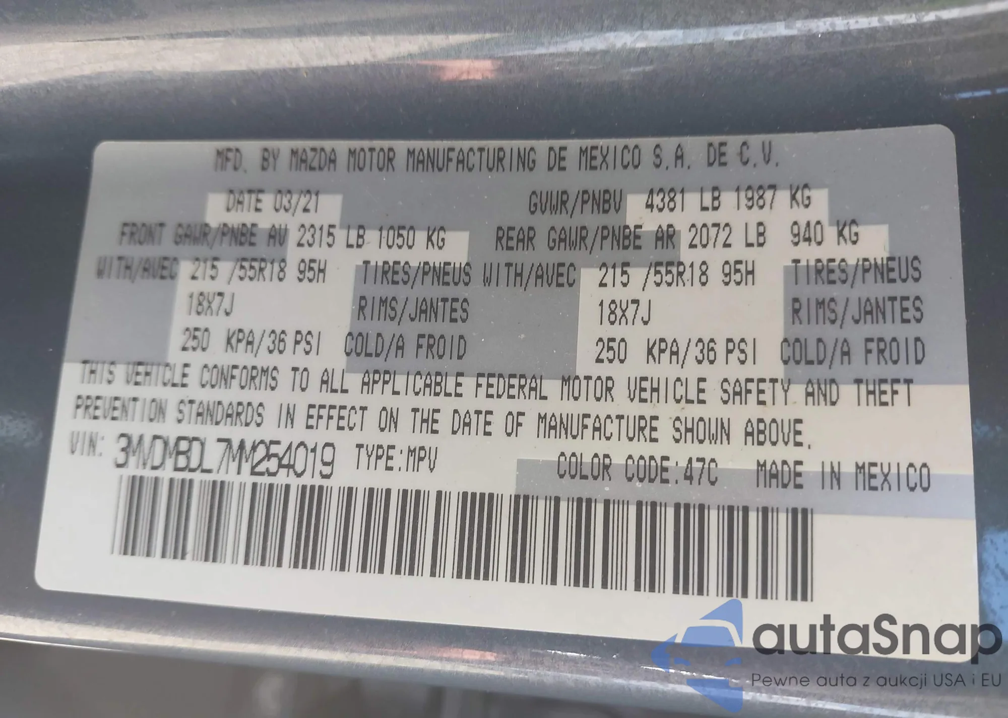 LOT: 43256815 VIN: 3MVDMBDL7MM254019