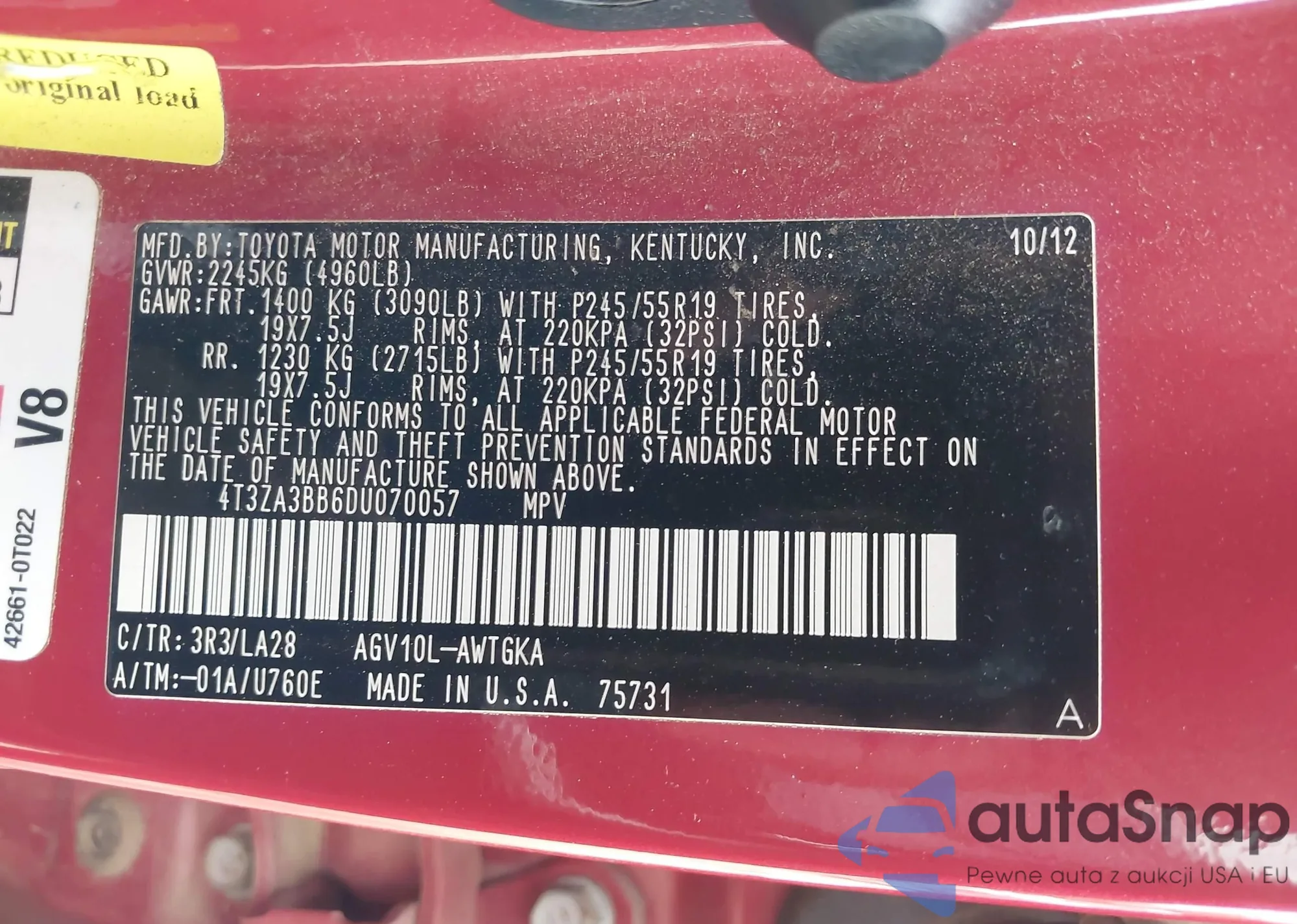 • VIN 4T1BF1FK1FU091461