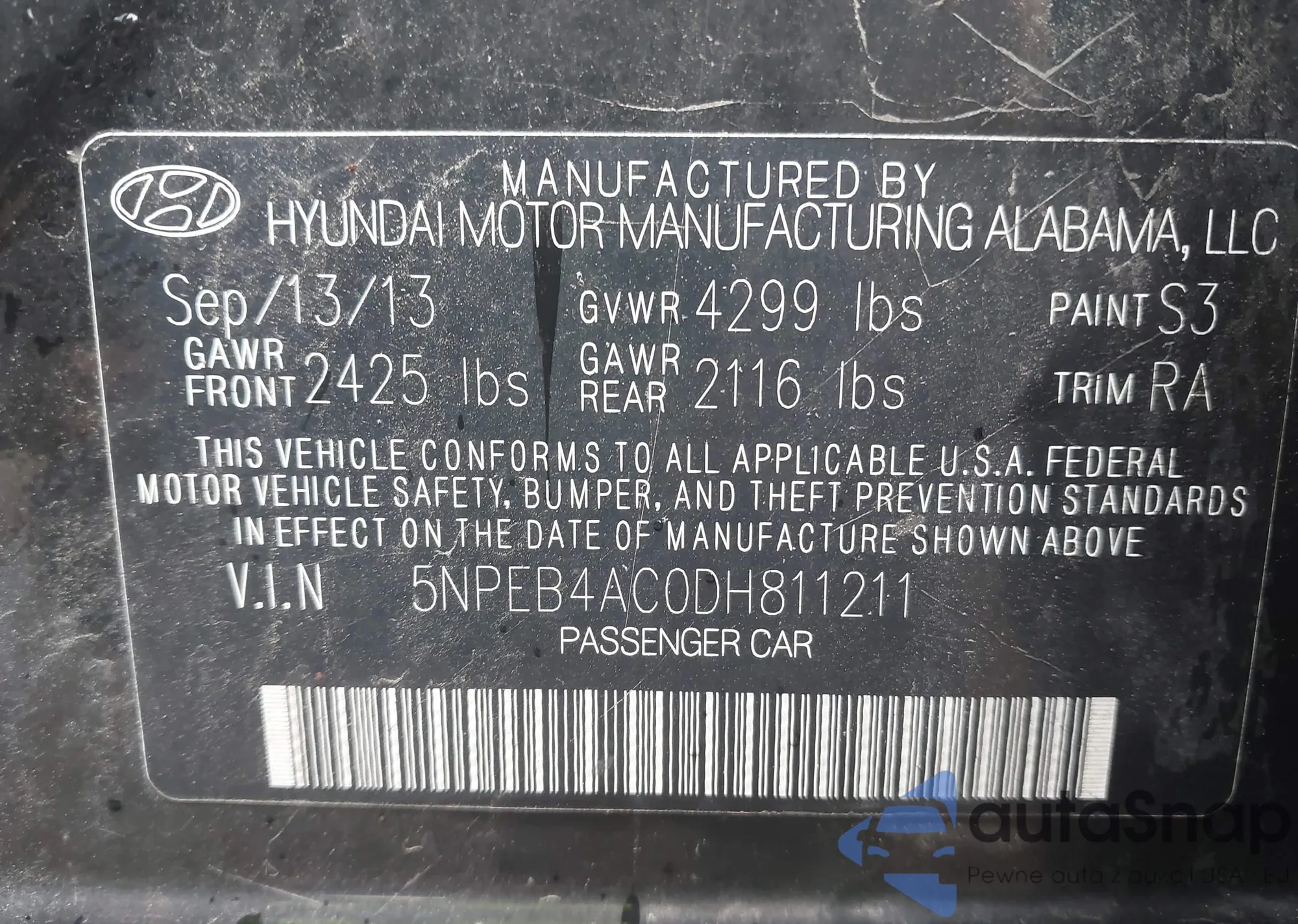 • VIN 5NPEB4AC0DH811211
