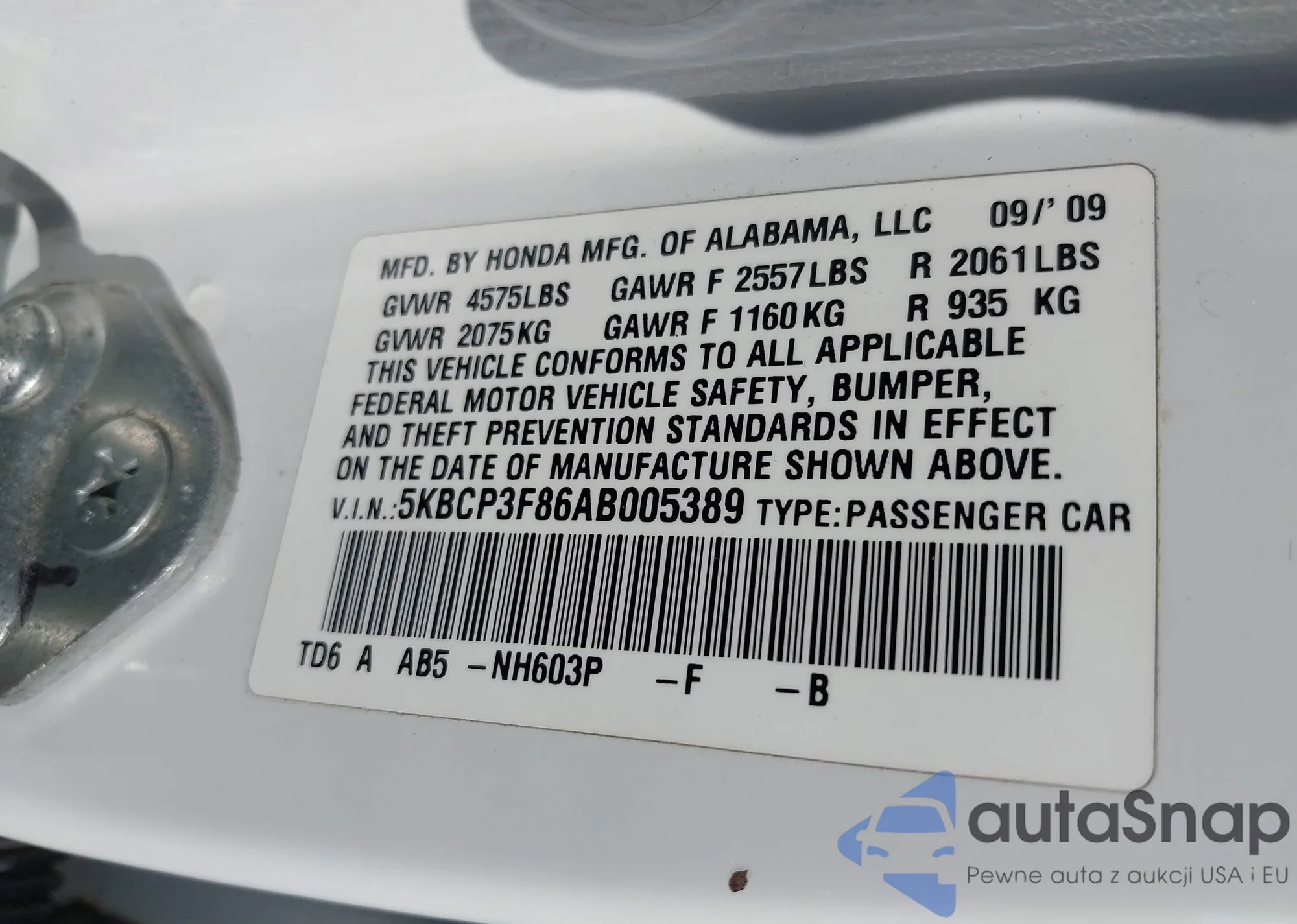 • VIN 5KBCP3F86AB005389