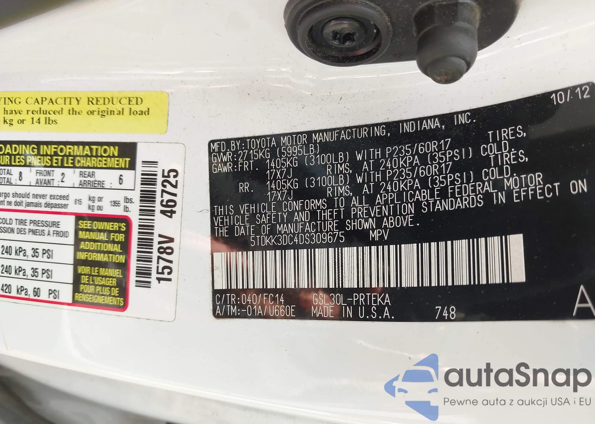 LOT: 43275532 VIN: 5TDKK3DC4DS309675