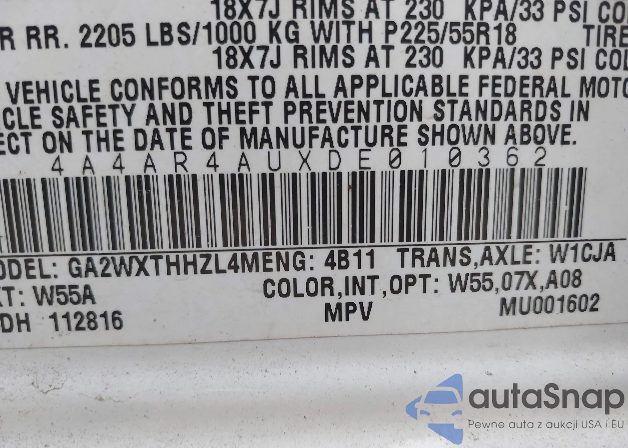 • VIN 4A4AR4AUXDE010362