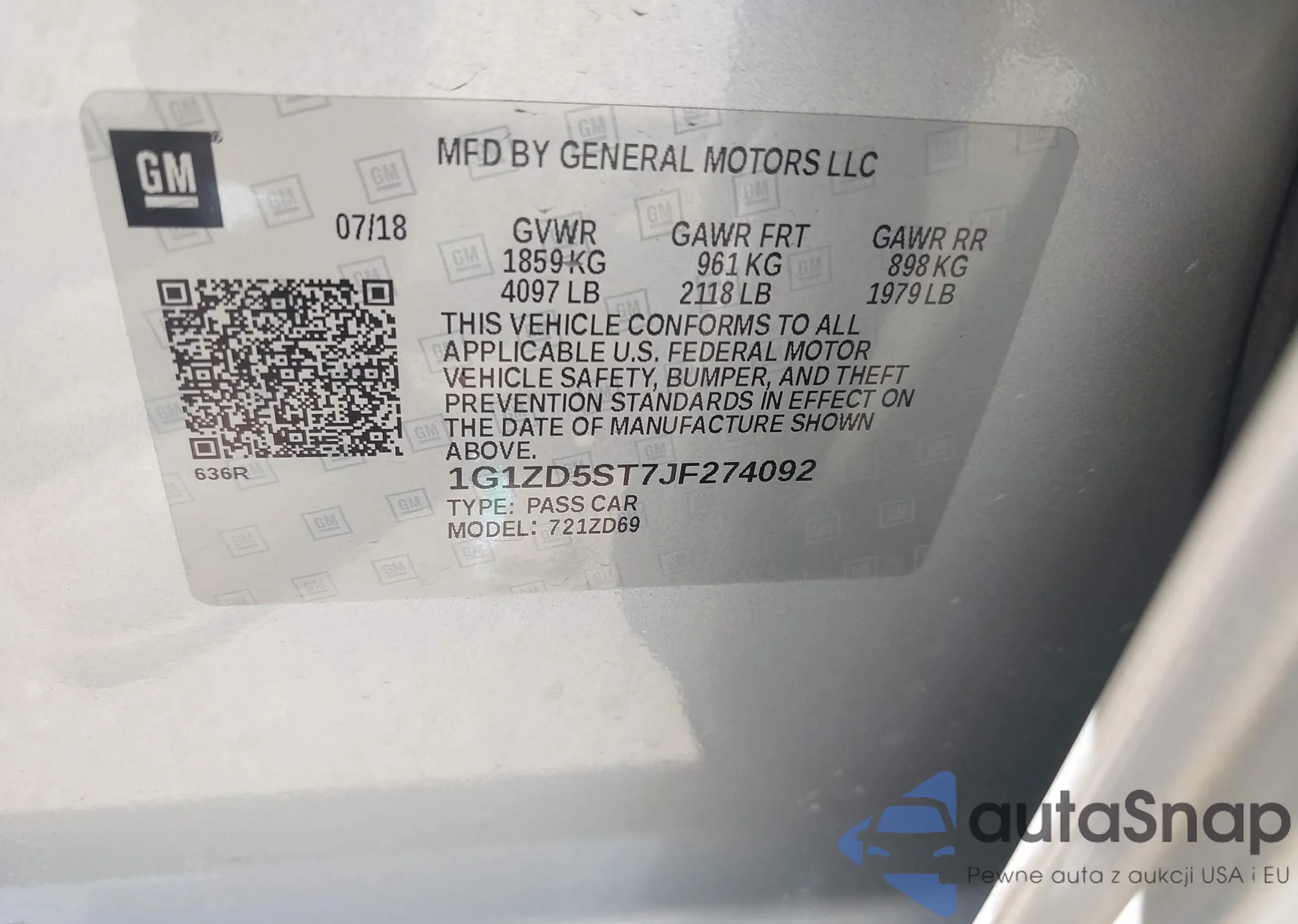 • VIN 1G1ZH5SX6GF207497