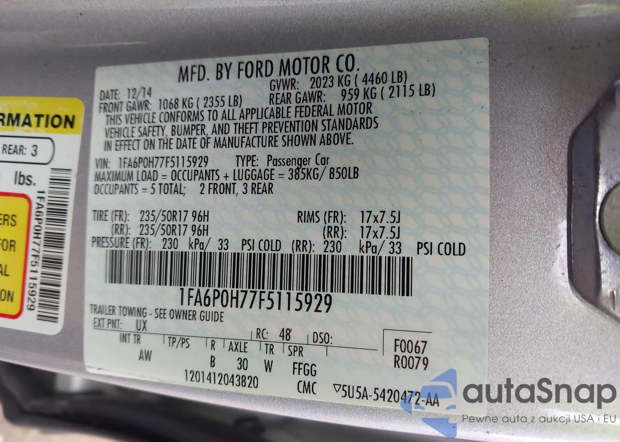 • VIN 2C3CCASG4FH736470