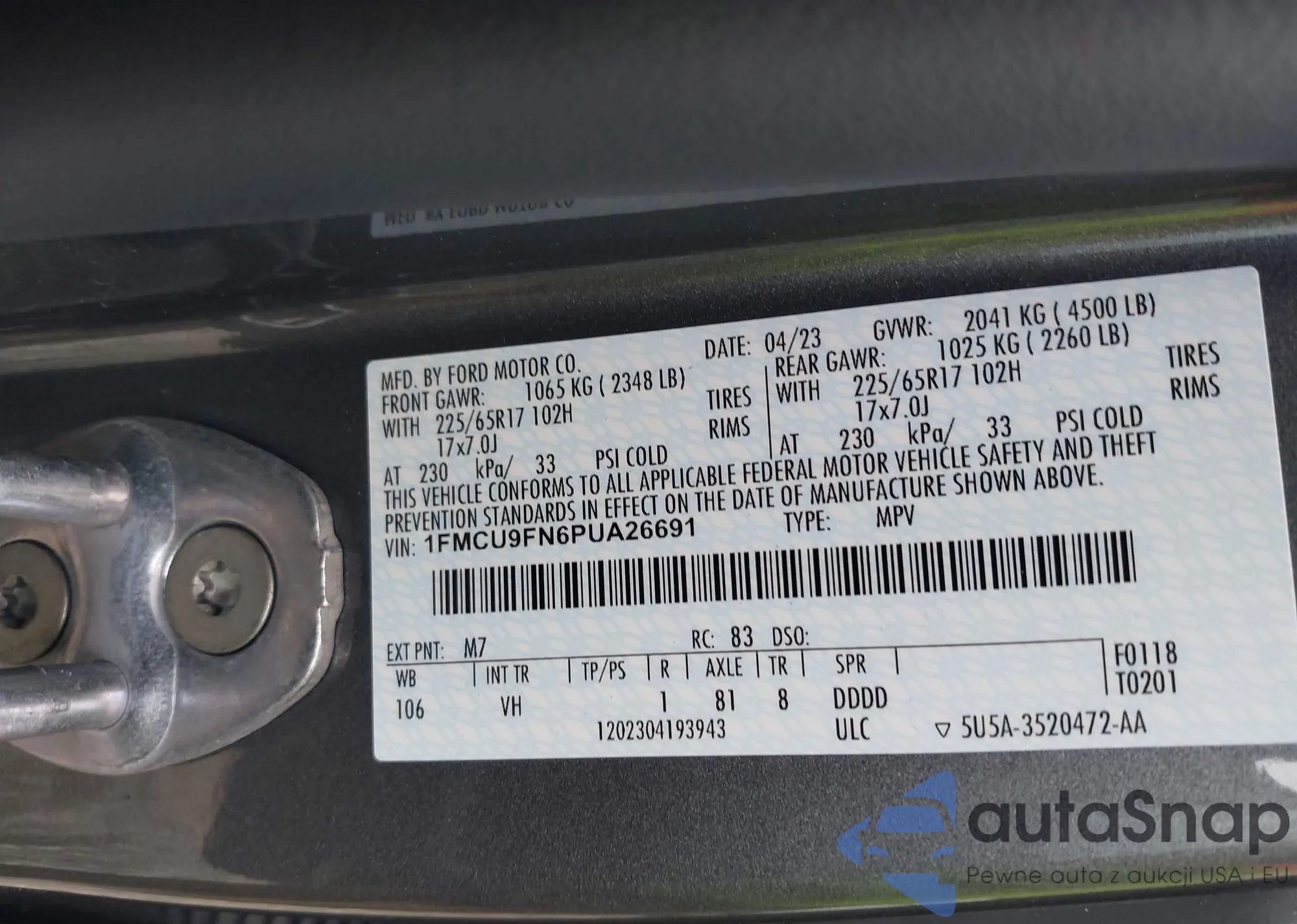 LOT: 43433845 VIN: 1HGCB7650MA213423