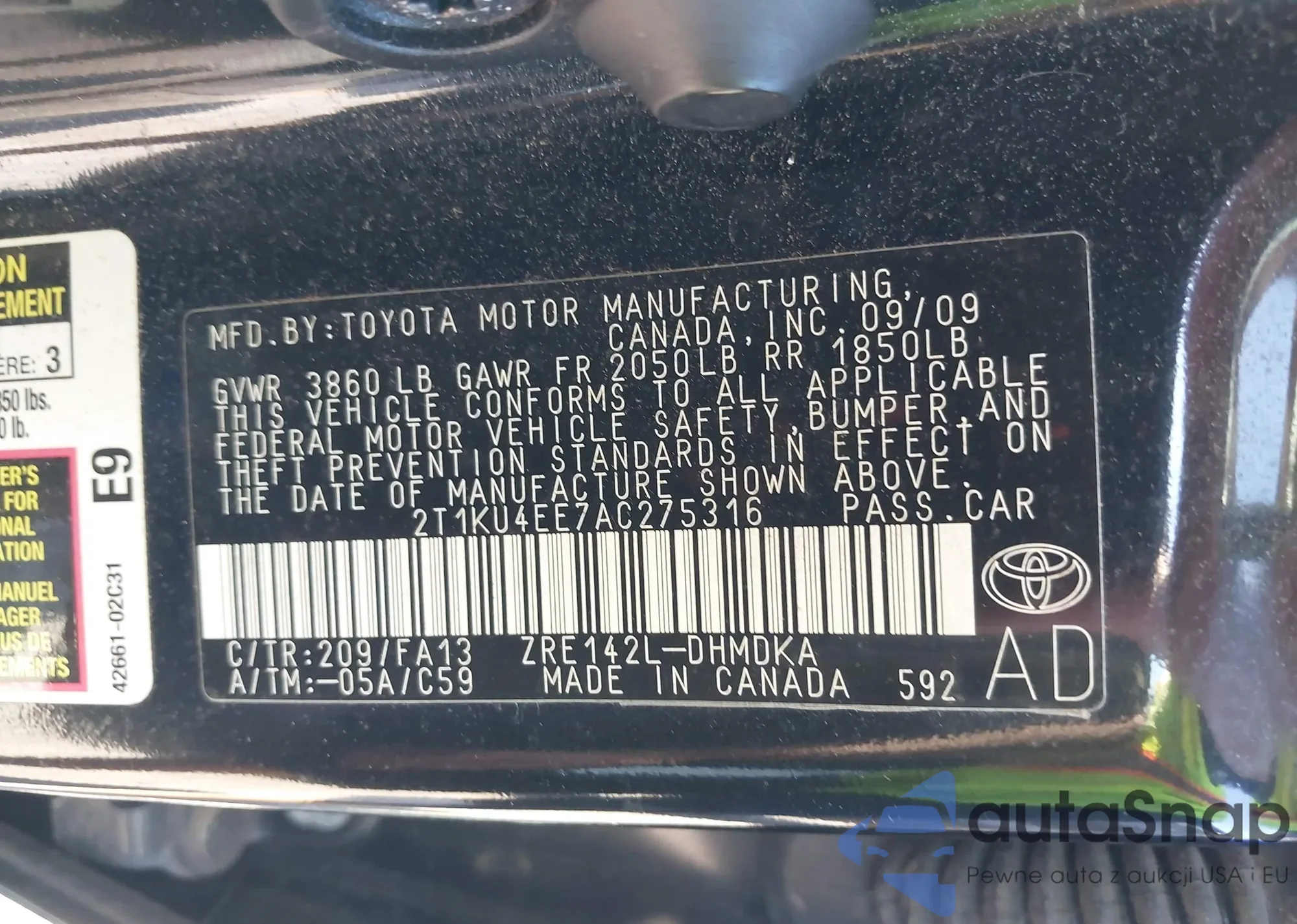 • VIN 2T1KU4EE7AC275316