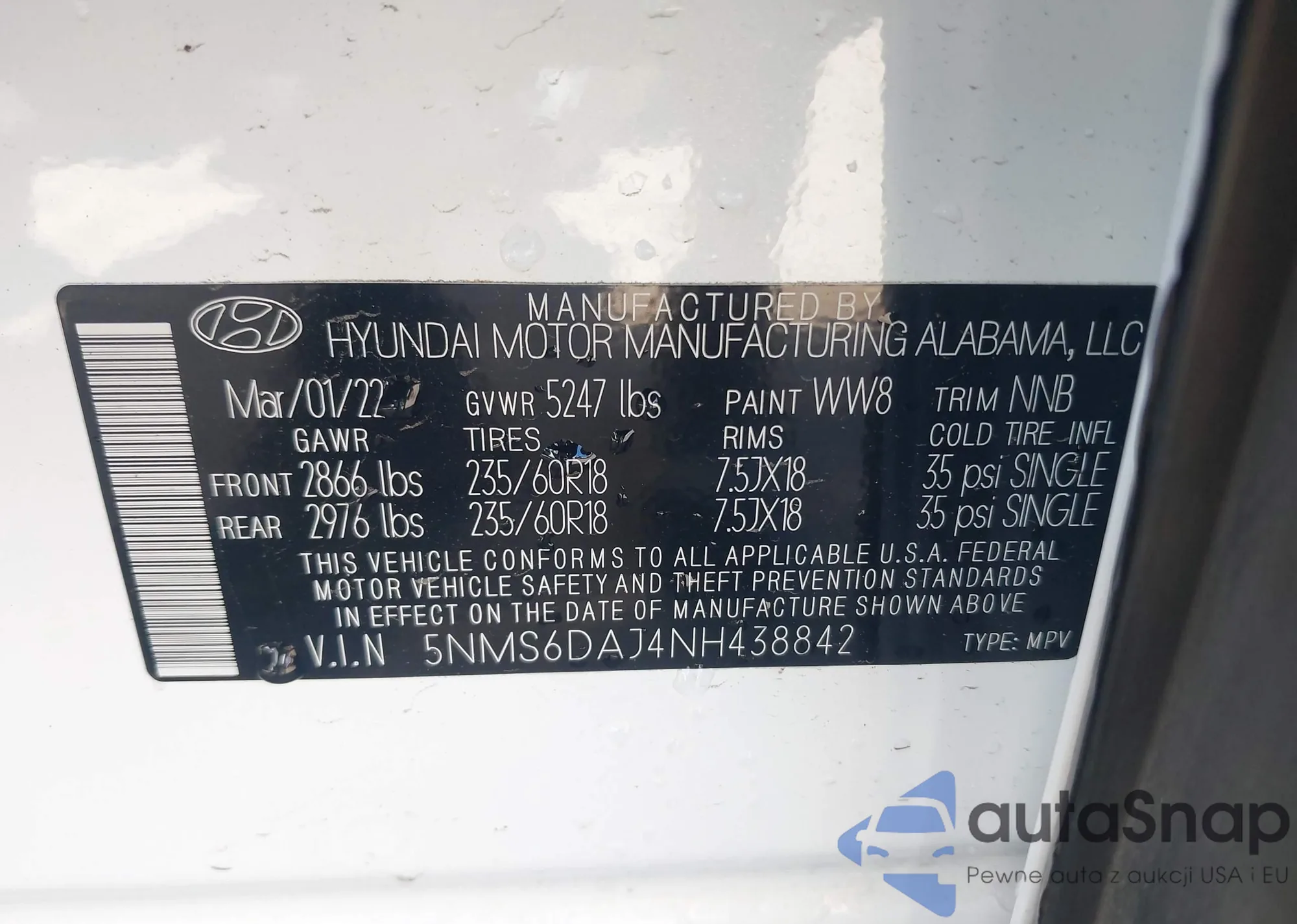 • VIN 5NMS6DAJ4NH438842