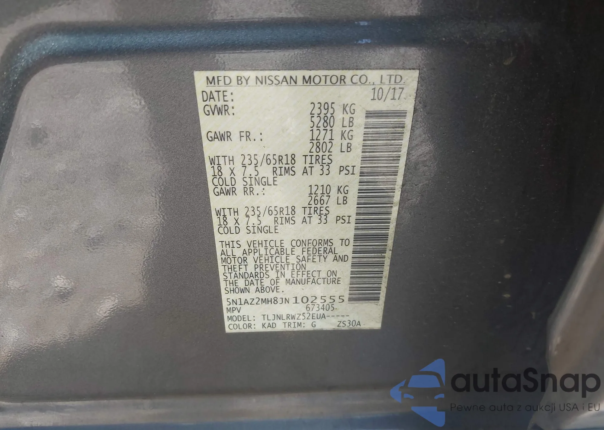 • VIN 5N1AZ2MH8JN102555