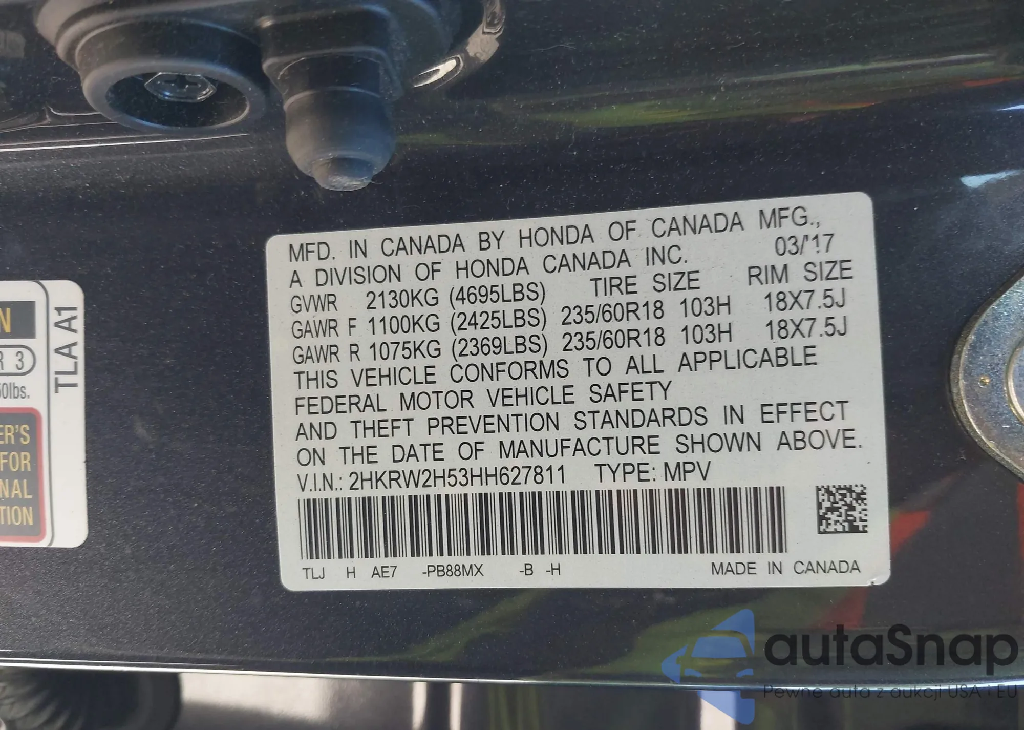 • VIN 2HKRW2H53HH627811