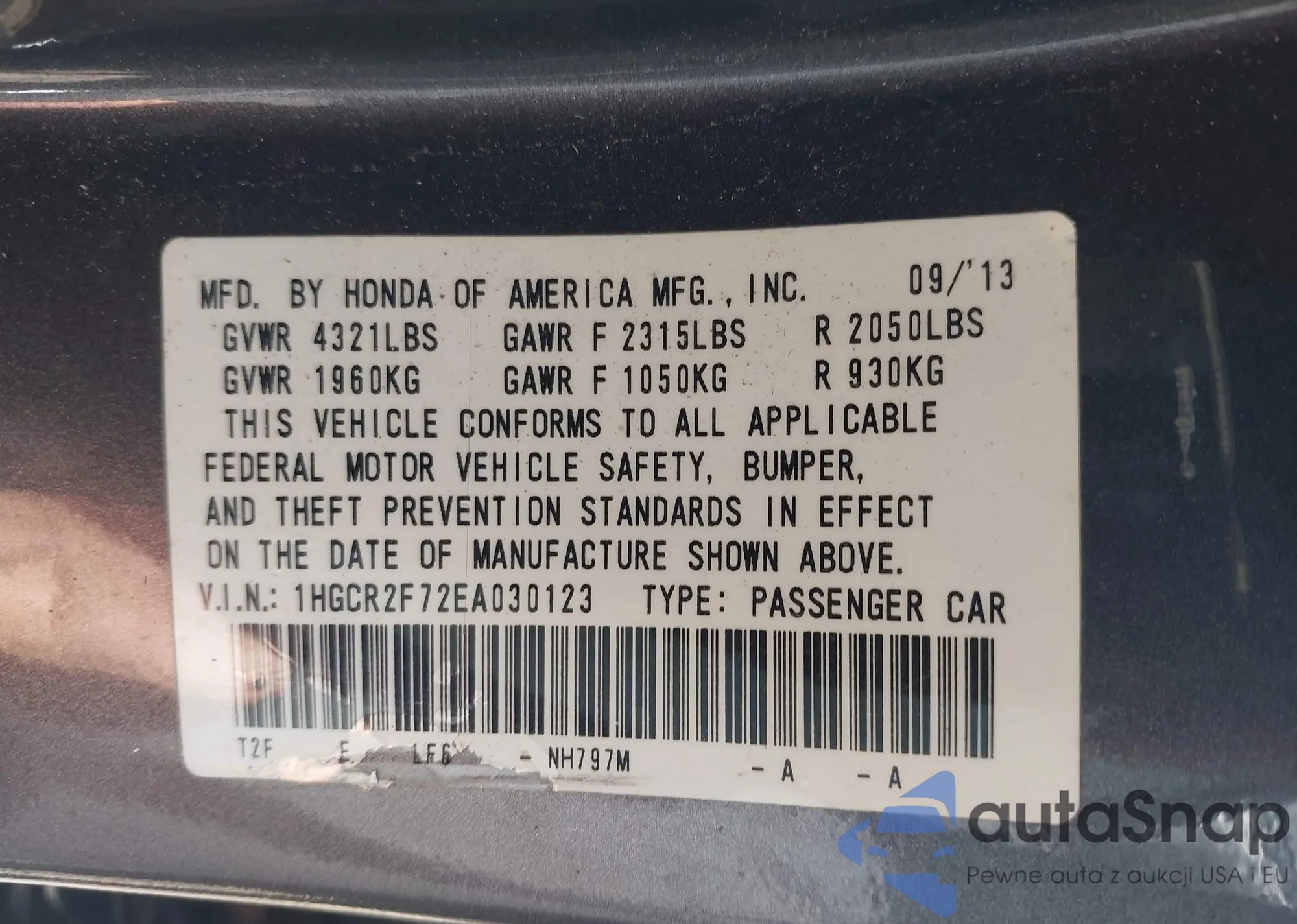 LOT: 43257247 VIN: 1HGCR2F72EA030123