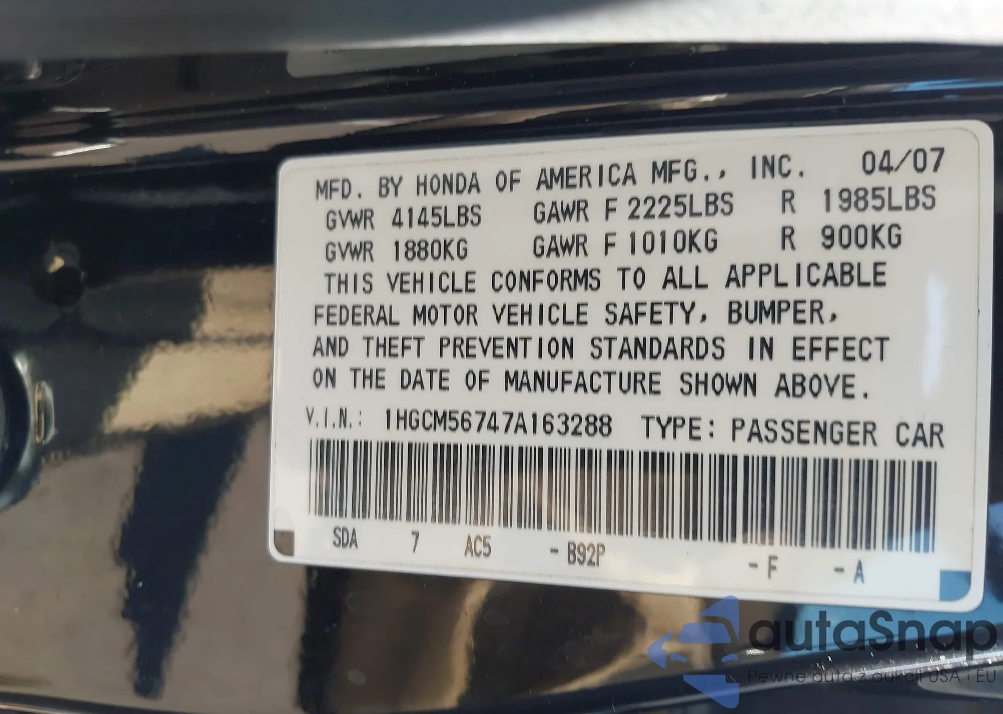 LOT: 43046736 VIN: 1HGCM56387A120585