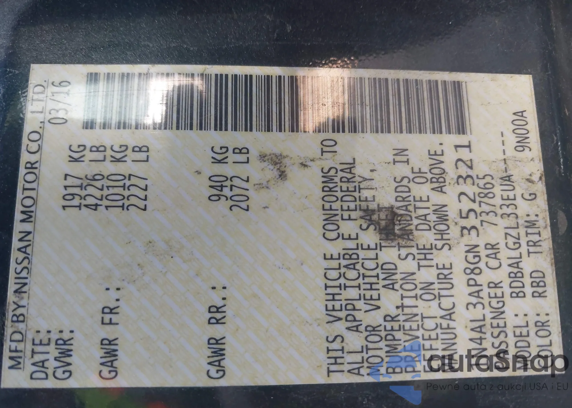 • VIN 1N4BL4DV6NN383312