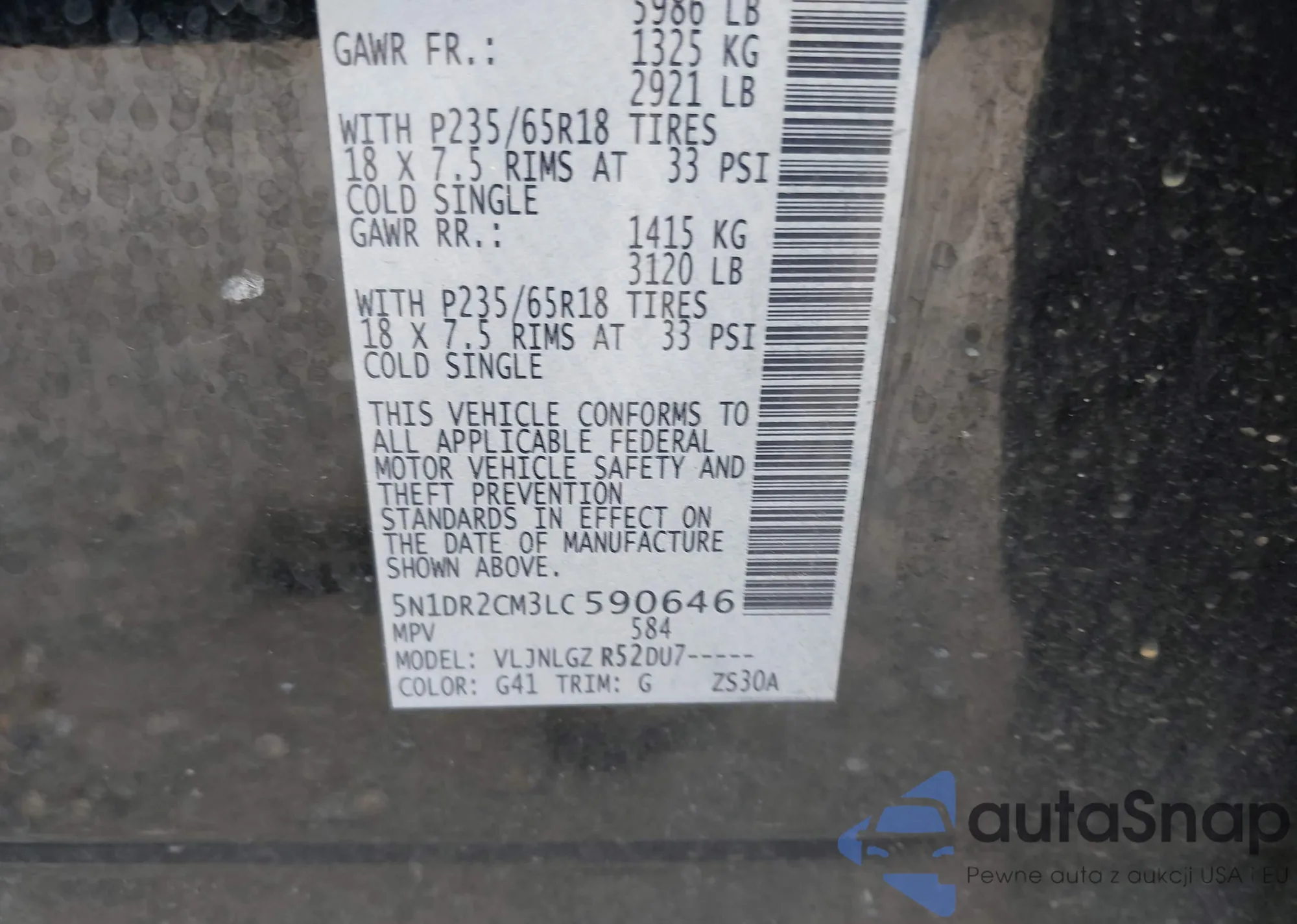 • VIN 5N1DR2CM3LC590646