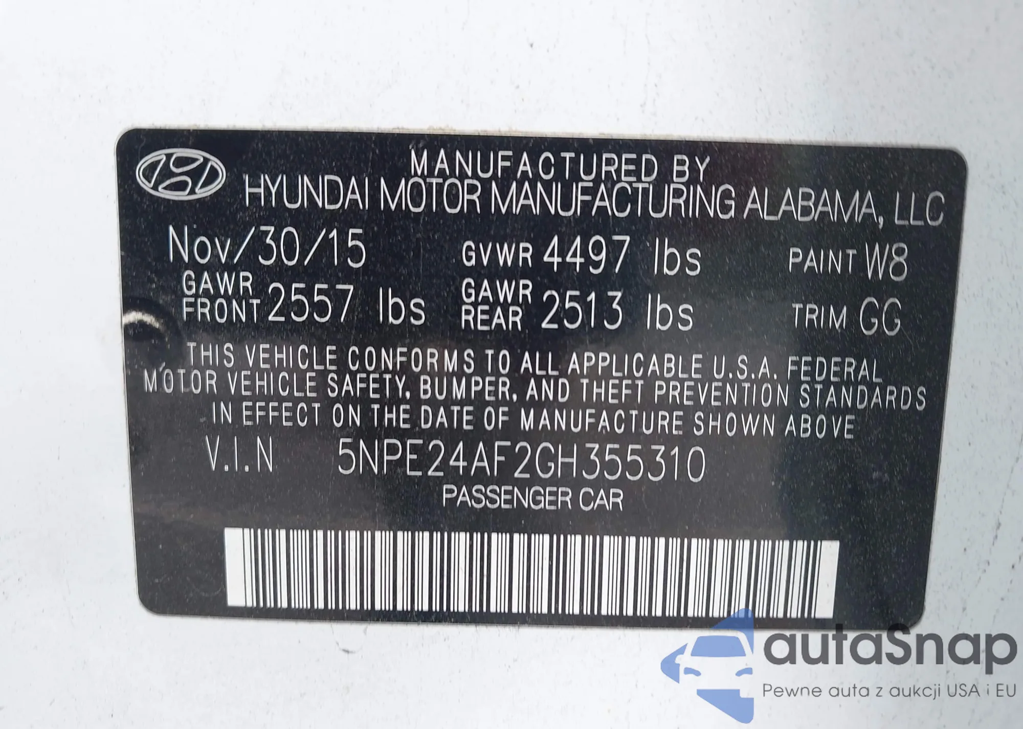• VIN 5NPE24AF2GH355310