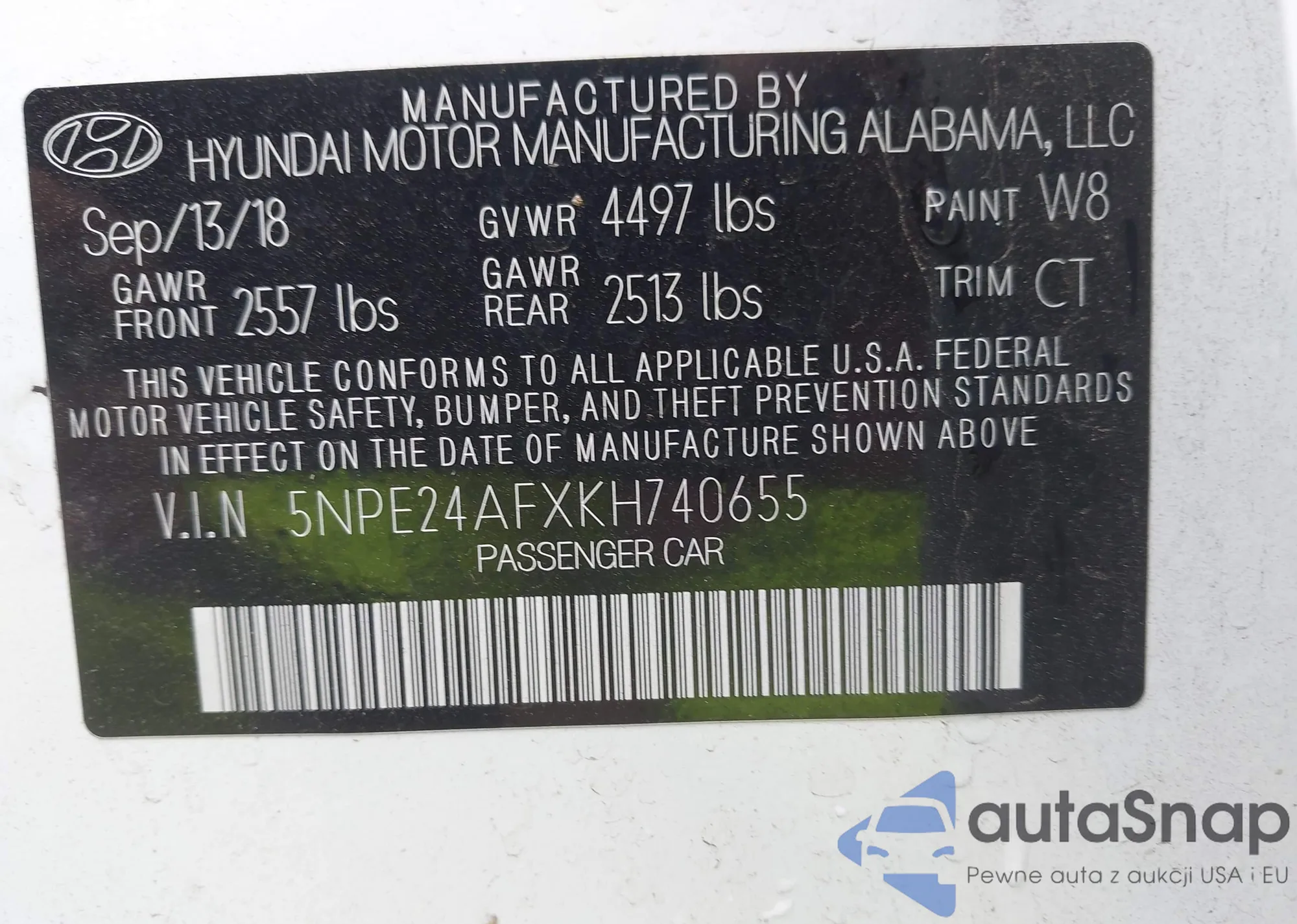 • VIN 5NPE24AFXKH740655