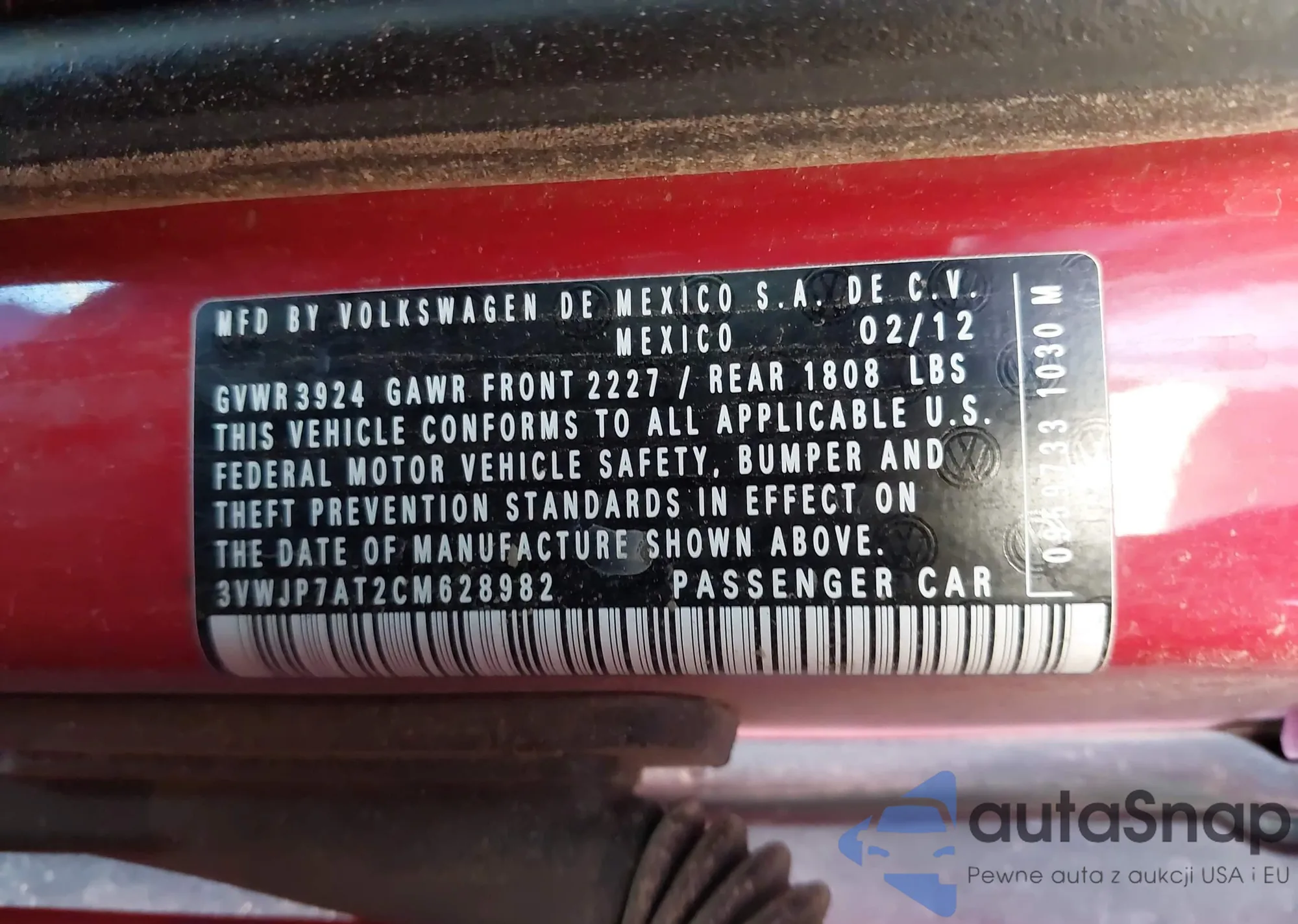 • VIN 3VWJP7AT2CM628982