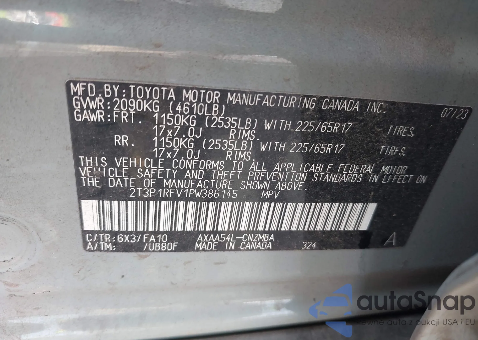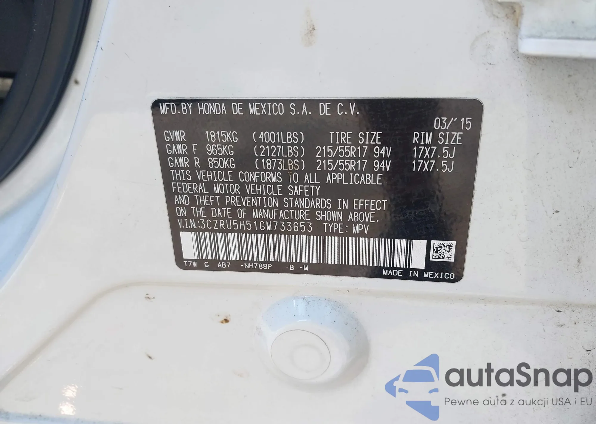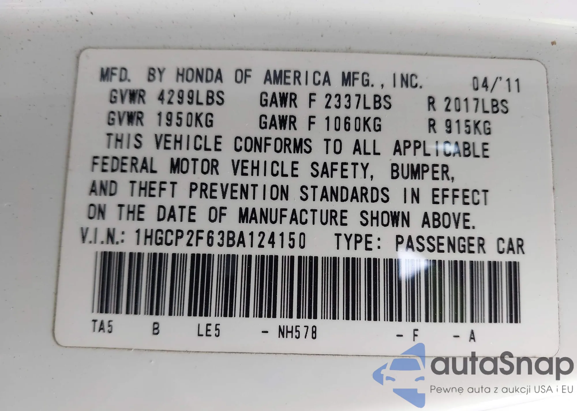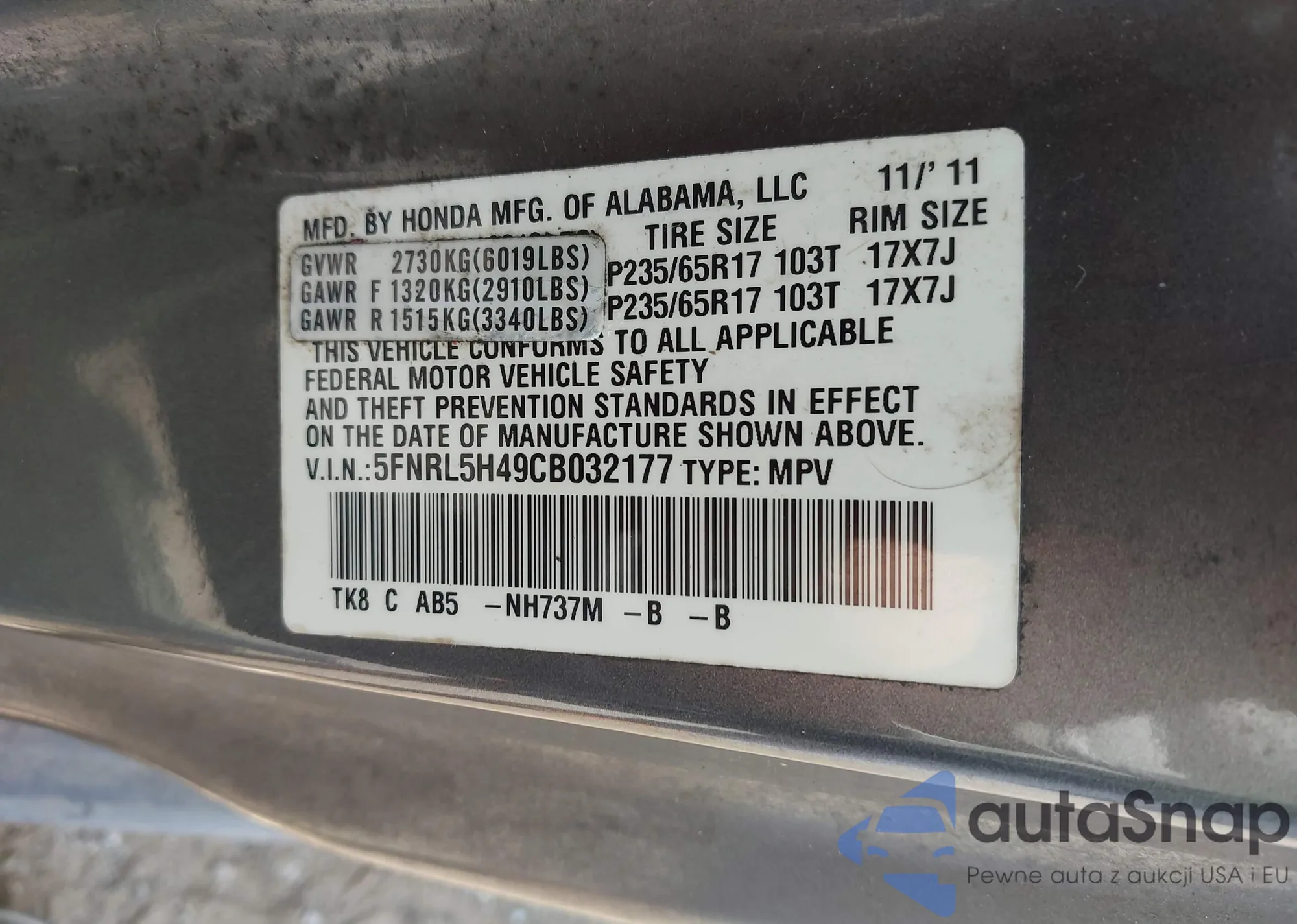 • VIN 5FNRL5H49CB032177