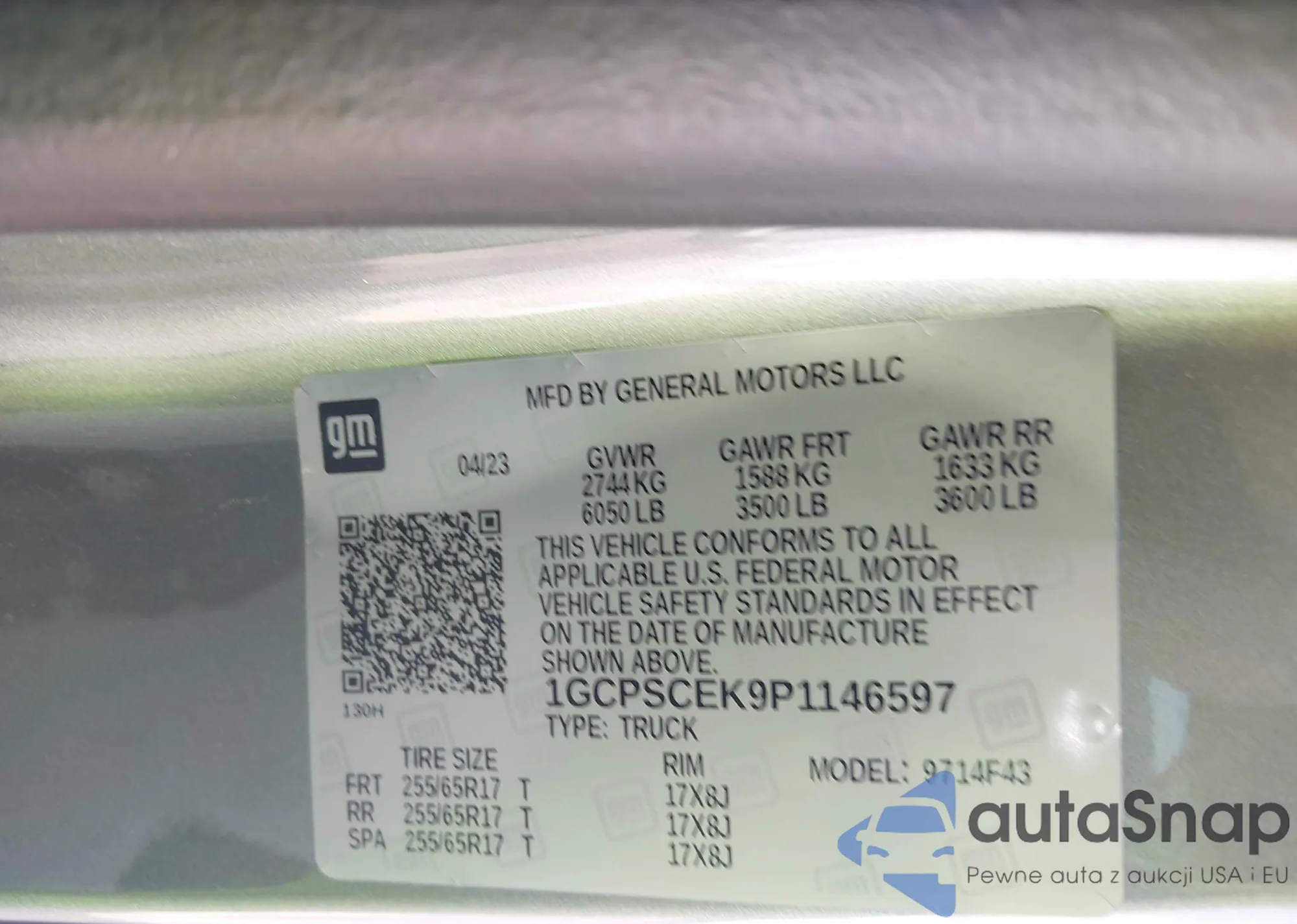 • VIN 1GCPSCEK9P1146597