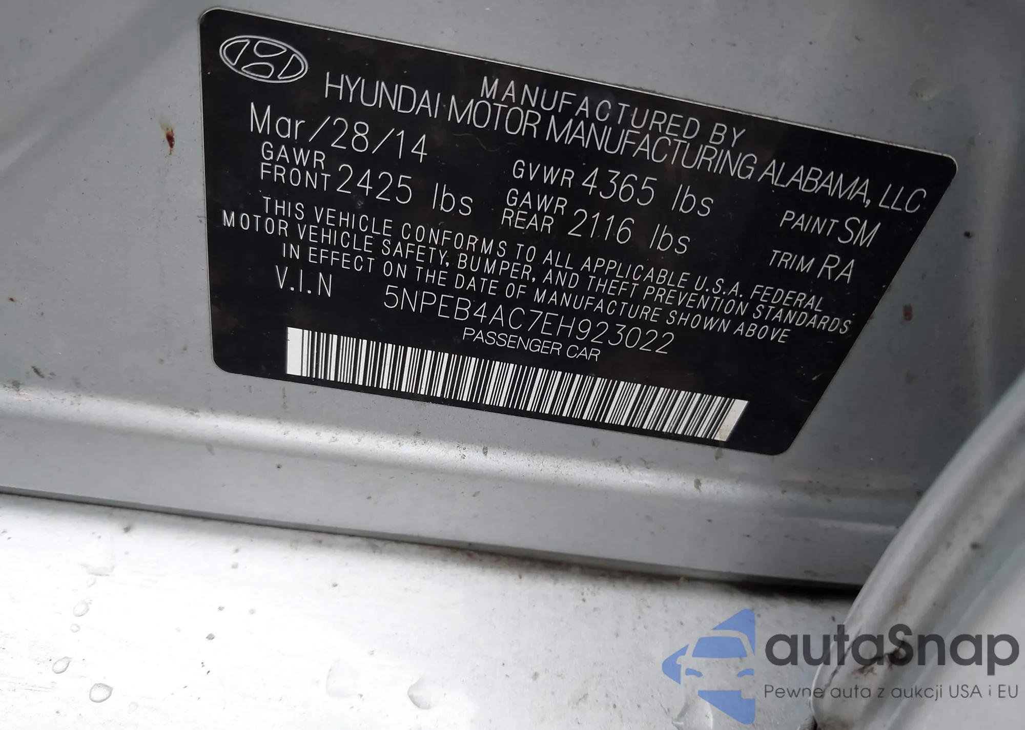 • VIN 5NPEB4AC7EH923022