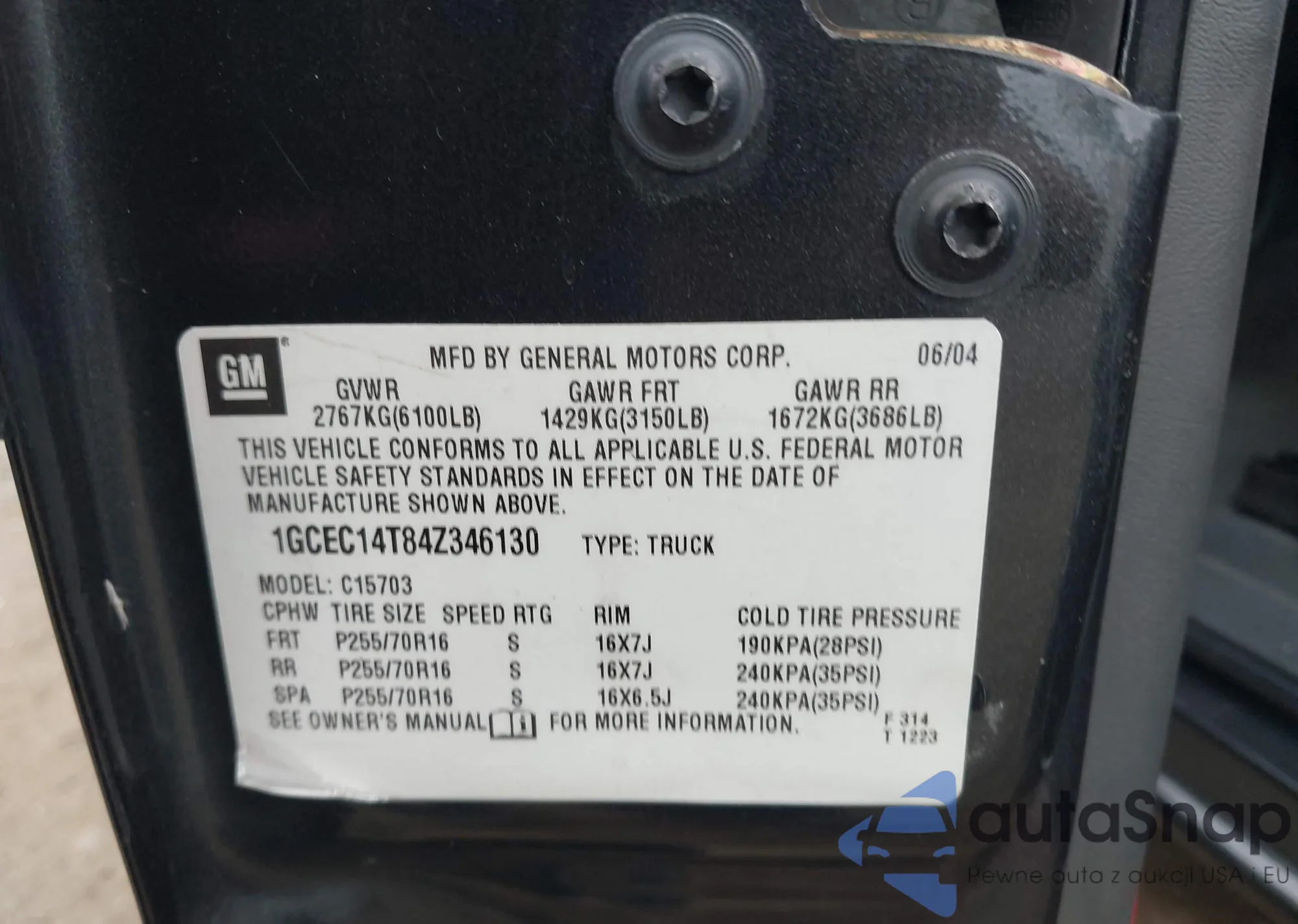 2004 Chevrolet Silverado 1500 Ls from USA, damaged, VIN 1GCEC14T84Z346130