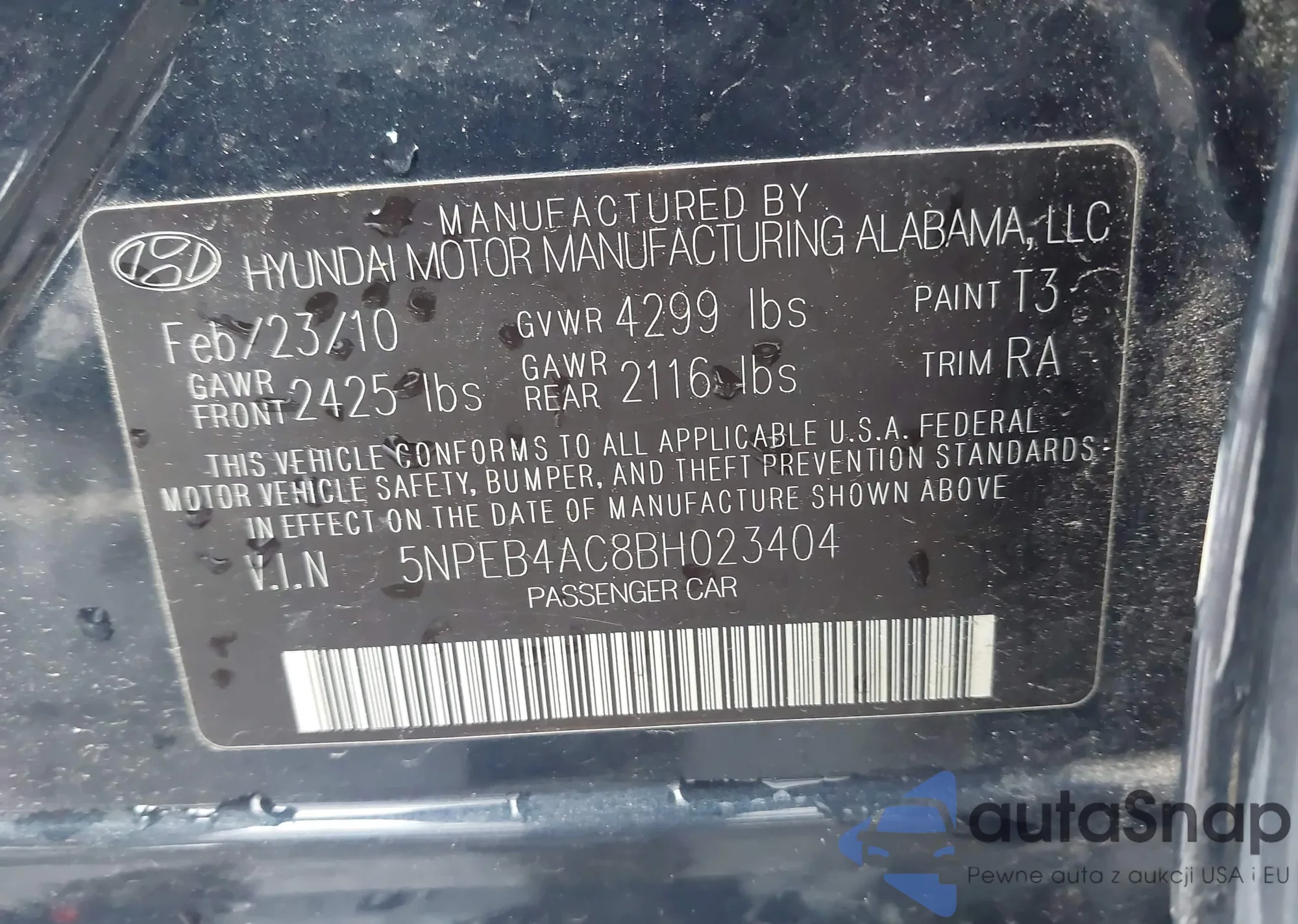 LOT: 43407104 VIN: 5NPD74LF2LH505016