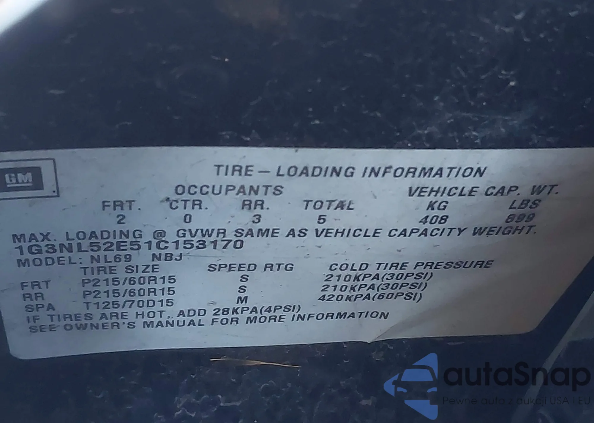 • VIN 2G1105S33K9141235