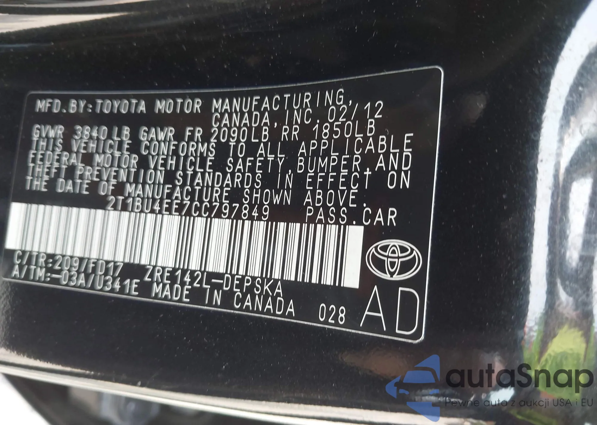 • VIN 2T1BU4EE7CC797849