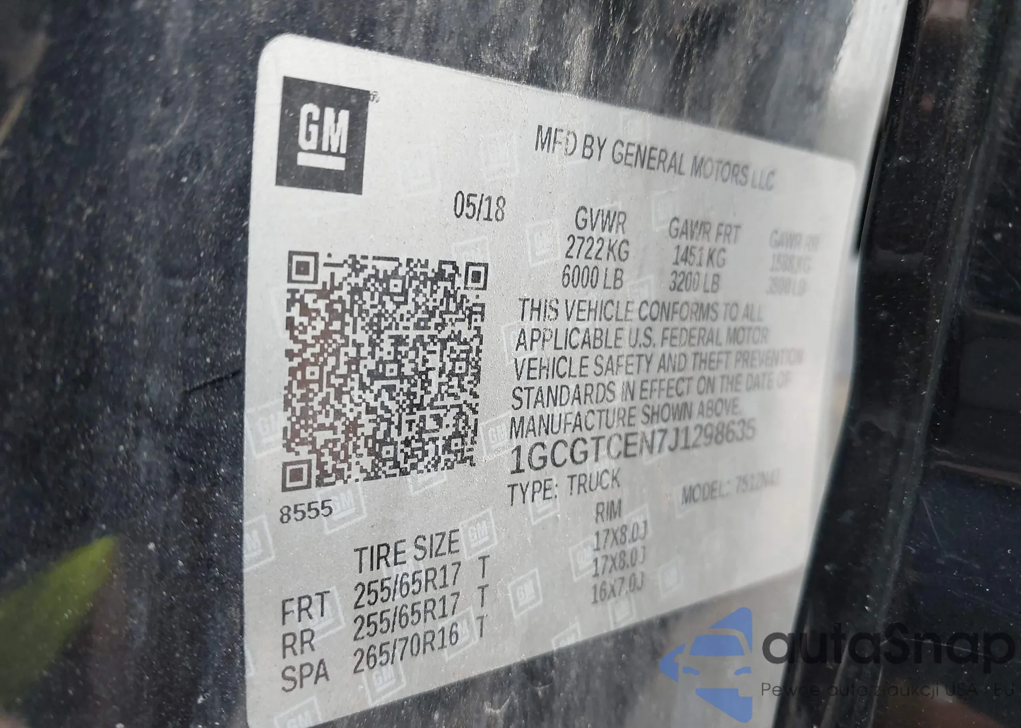 LOT: 42926108 VIN: 1GCGTCEN7J1298635