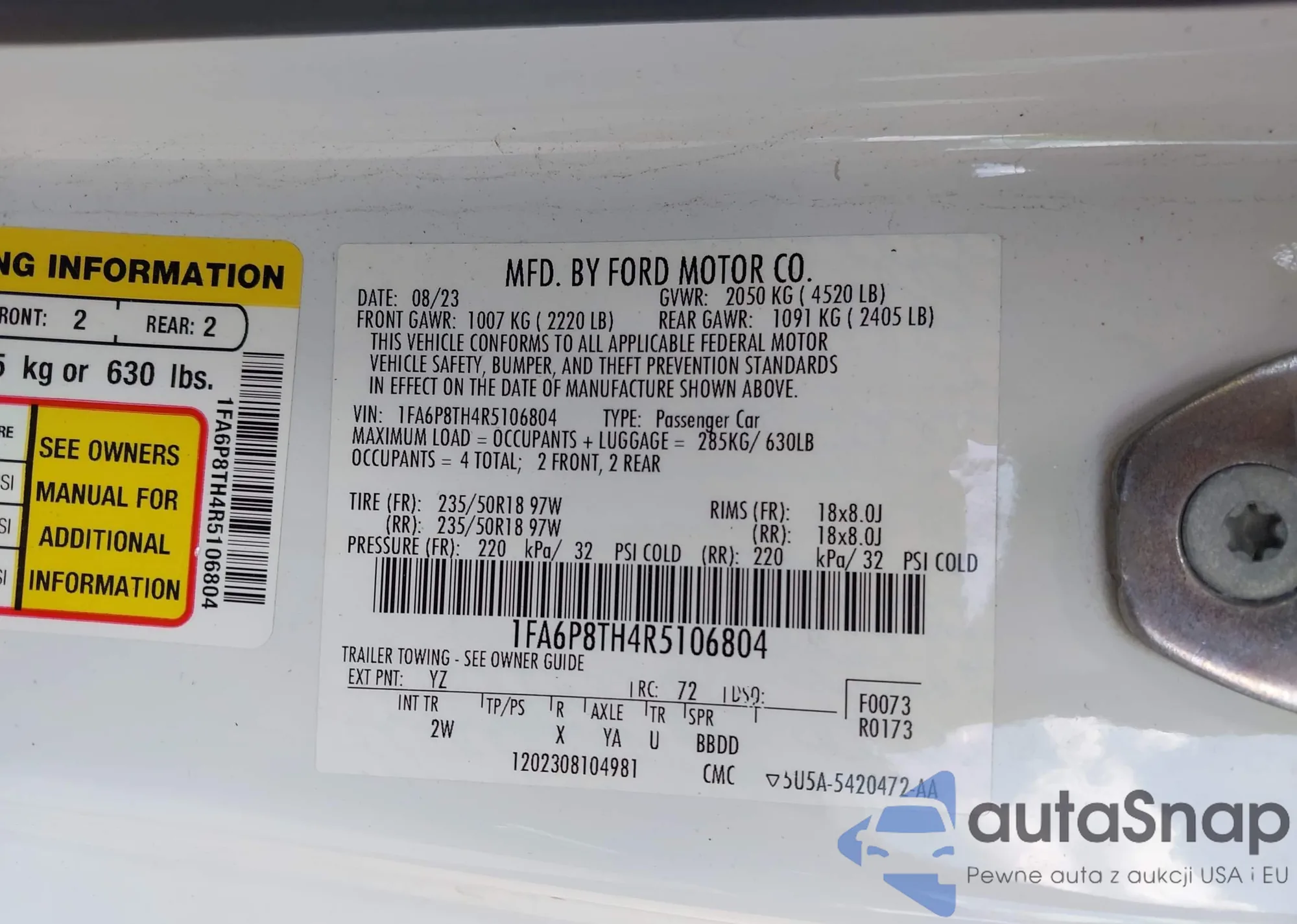 LOT: 42891466 VIN: 3FAHP07158R271408