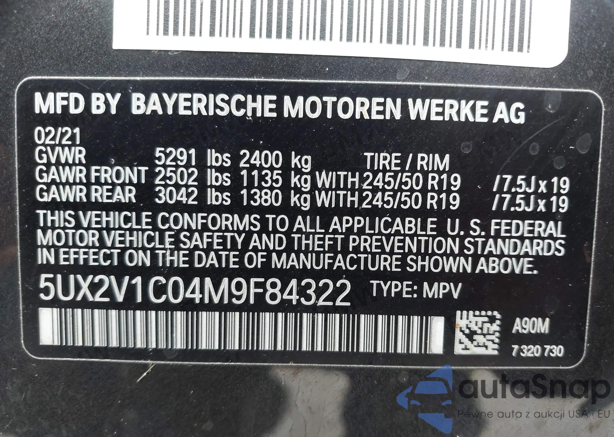• VIN 5UX2V1C04M9F84322