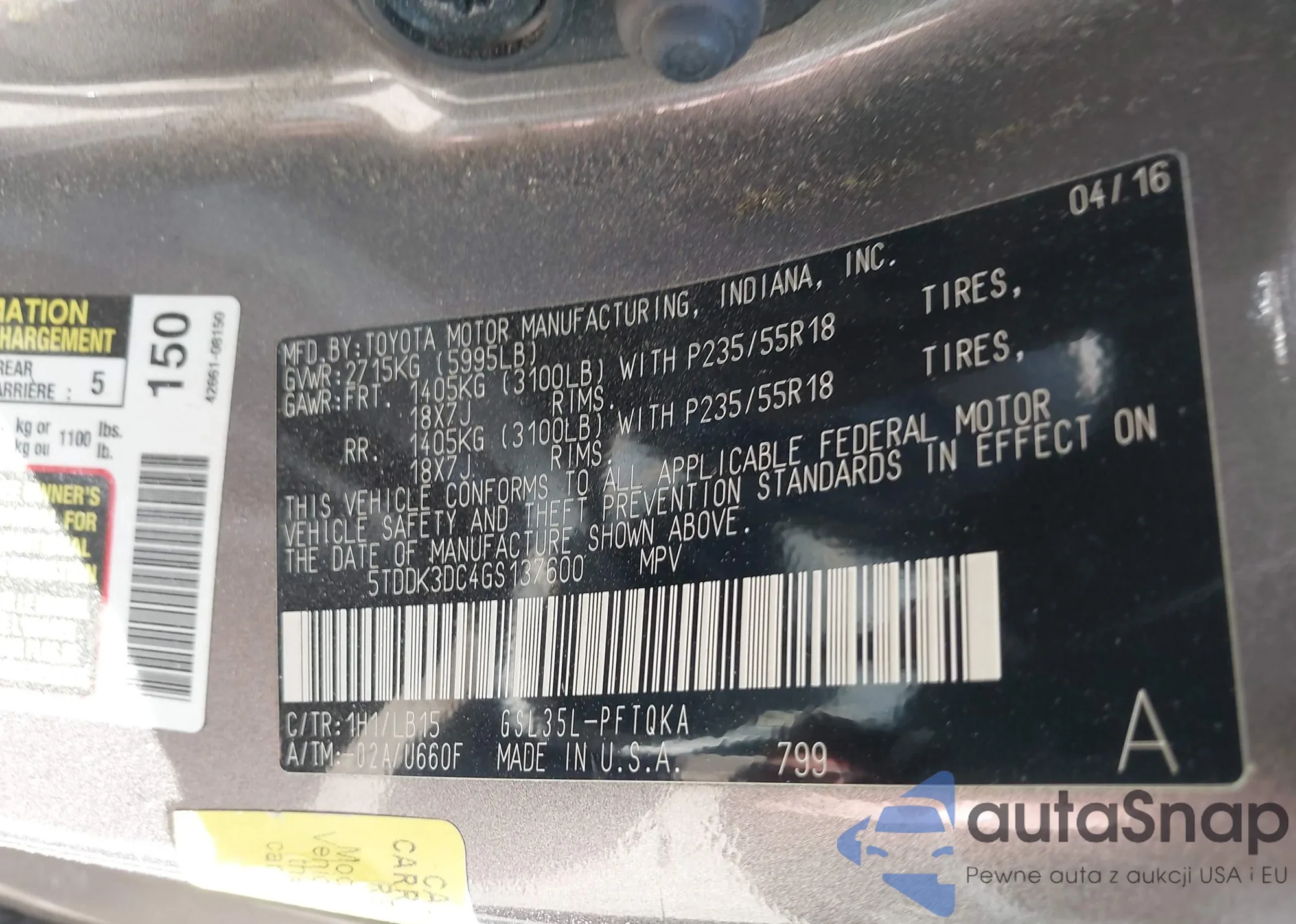 • VIN 5TDDK3DC4GS137600