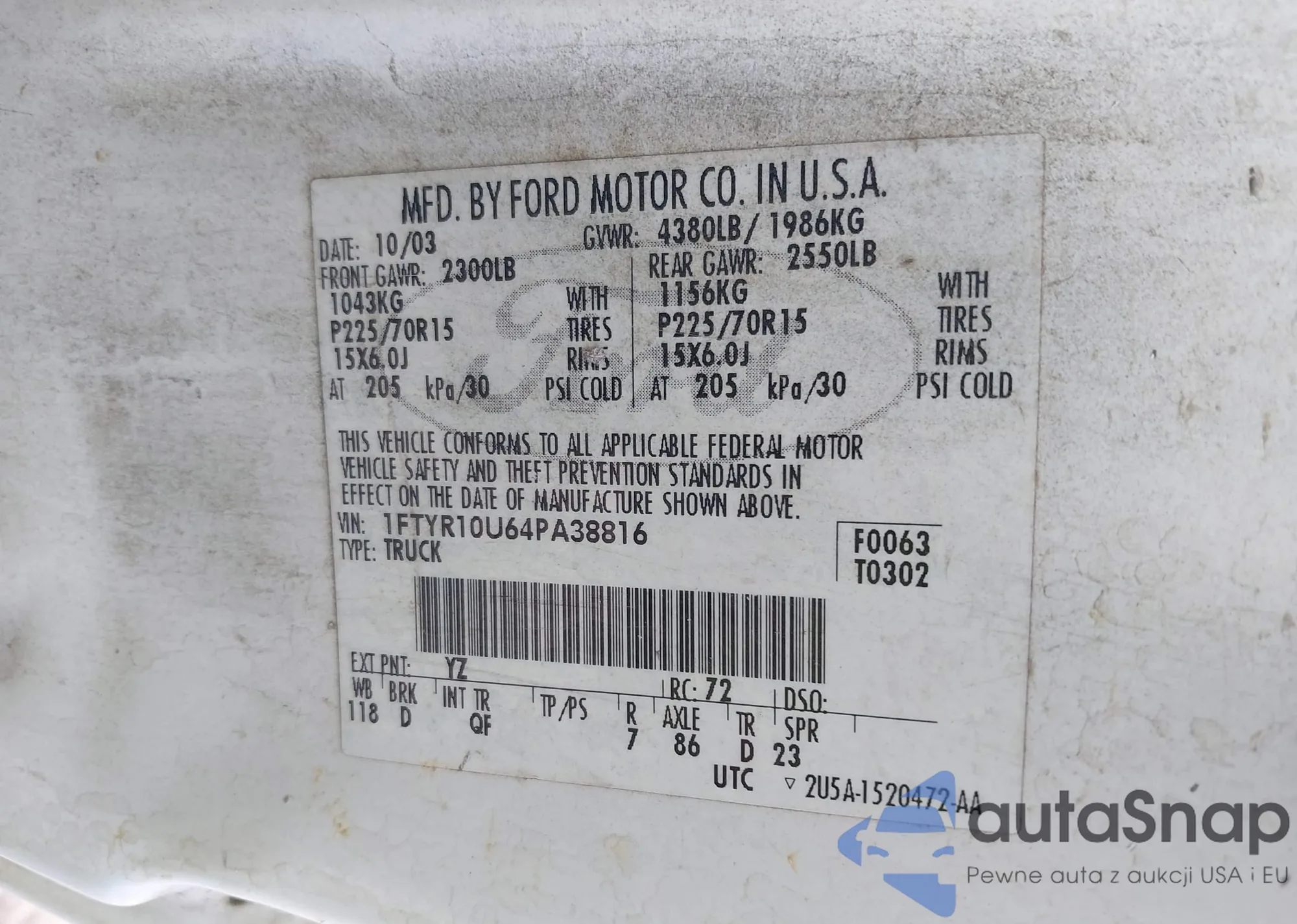 LOT: 42904152 VIN: 1FTYR10U64PA38816