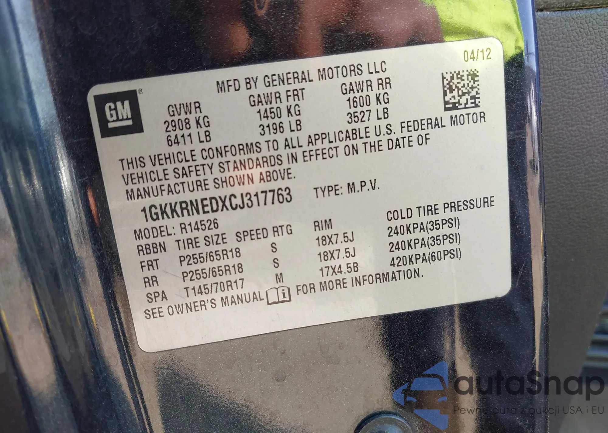 • VIN 1GKKRNEDXCJ317763