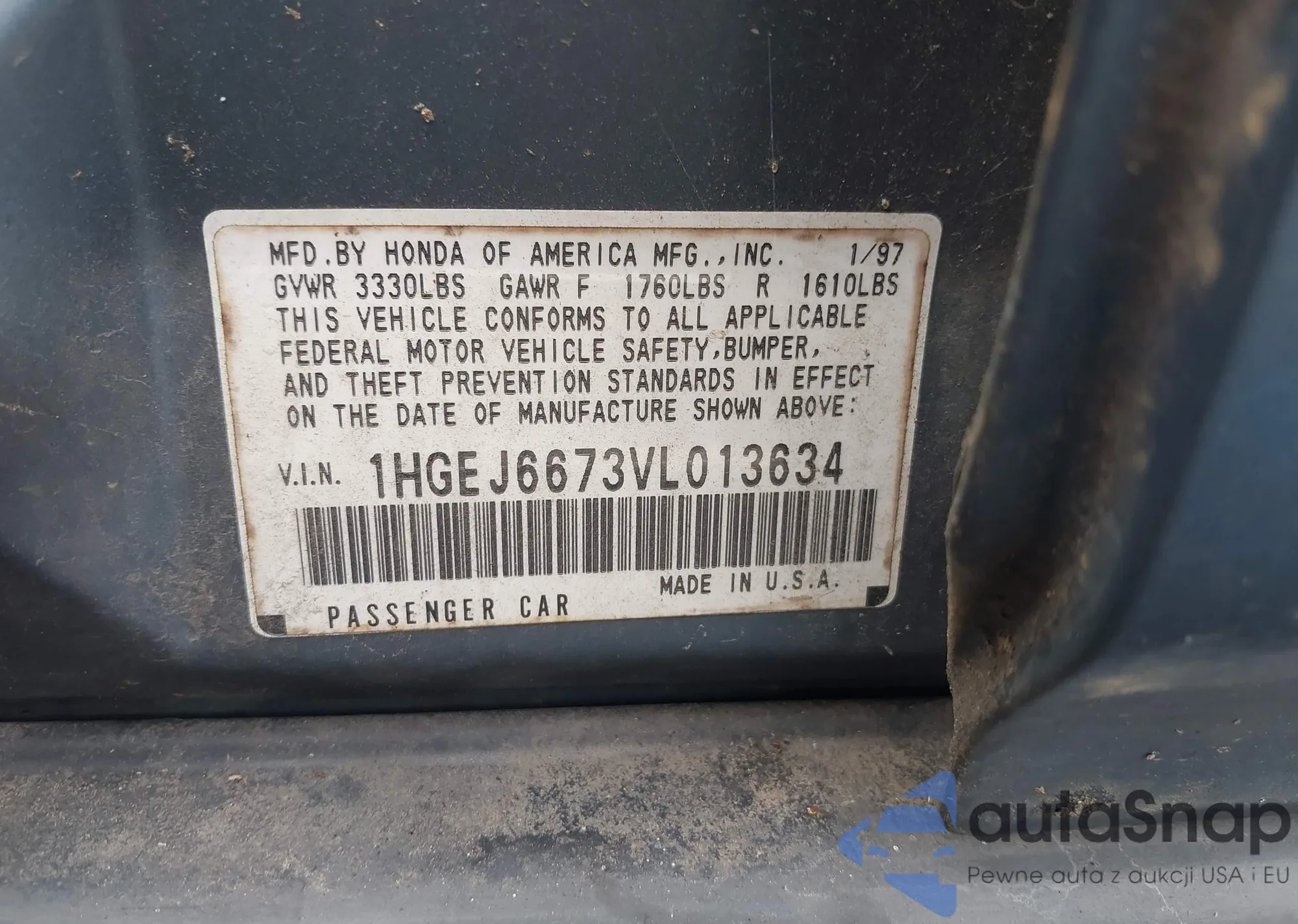 LOT: 43390544 VIN: 1HGCR2F7XGA147760