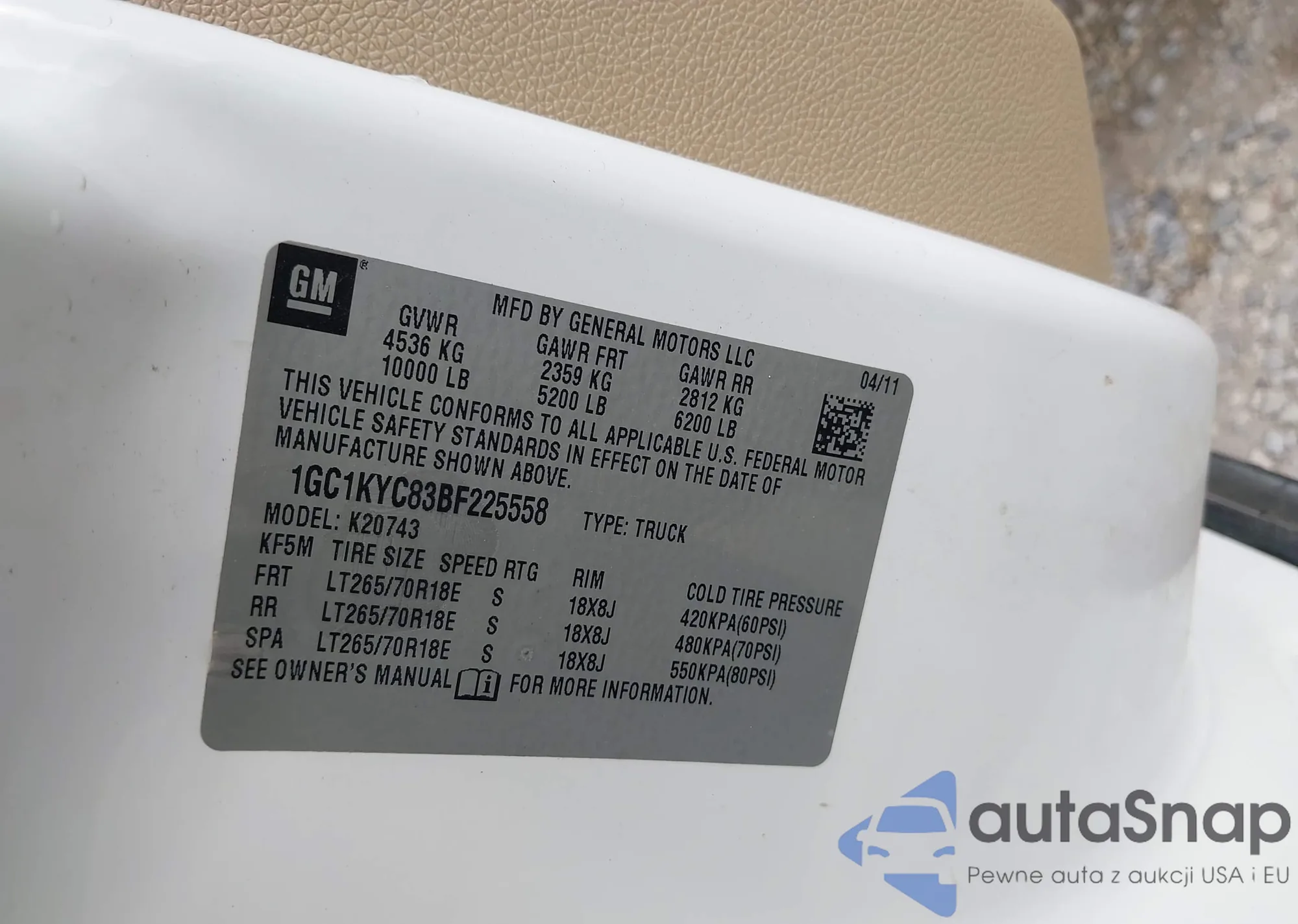 LOT: 41647915 VIN: 3GCPKTE30BG263939