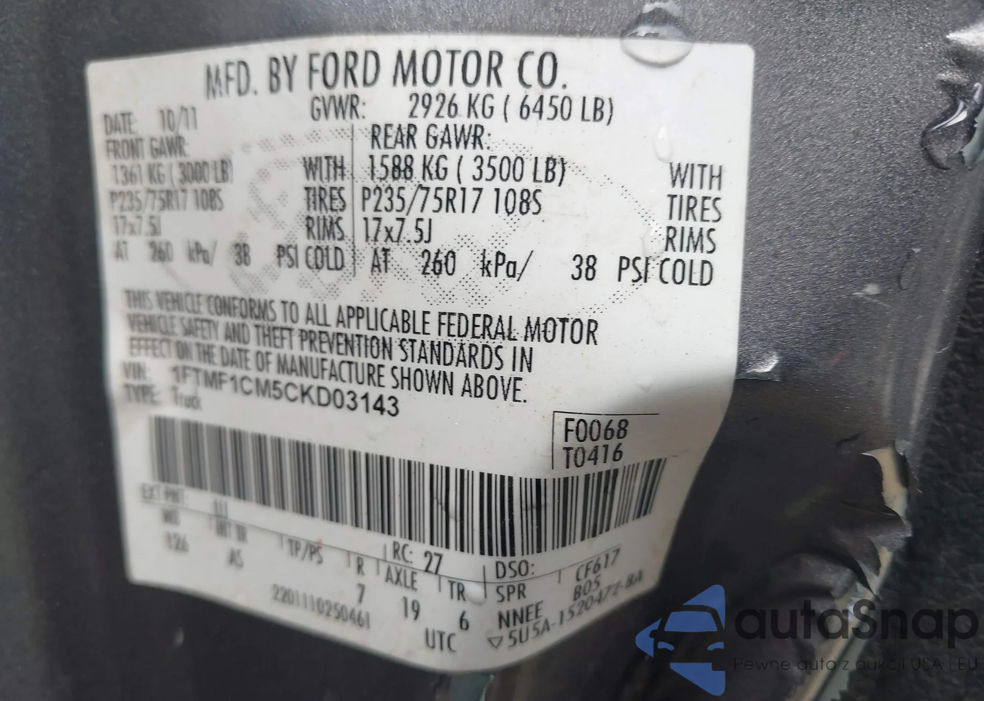 • VIN 1FTMF1CM5CKD03143