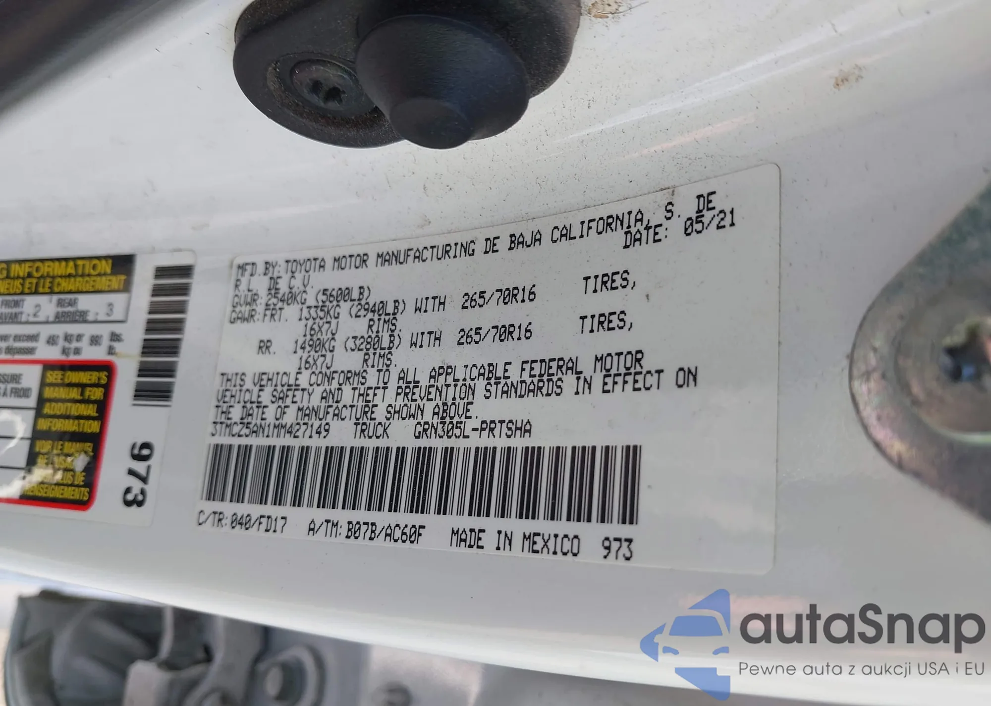 • VIN 3TMCZ5AN1MM427149