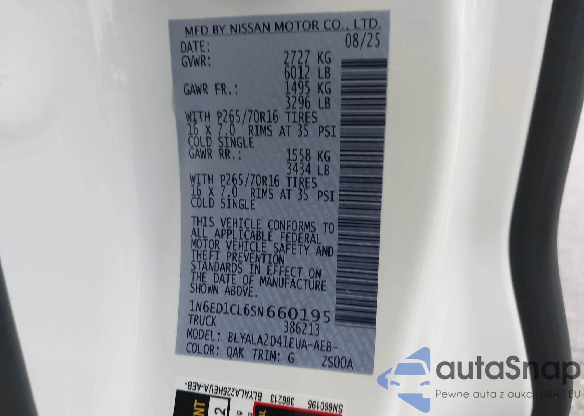 • VIN 1N6ED1CL6SN660195