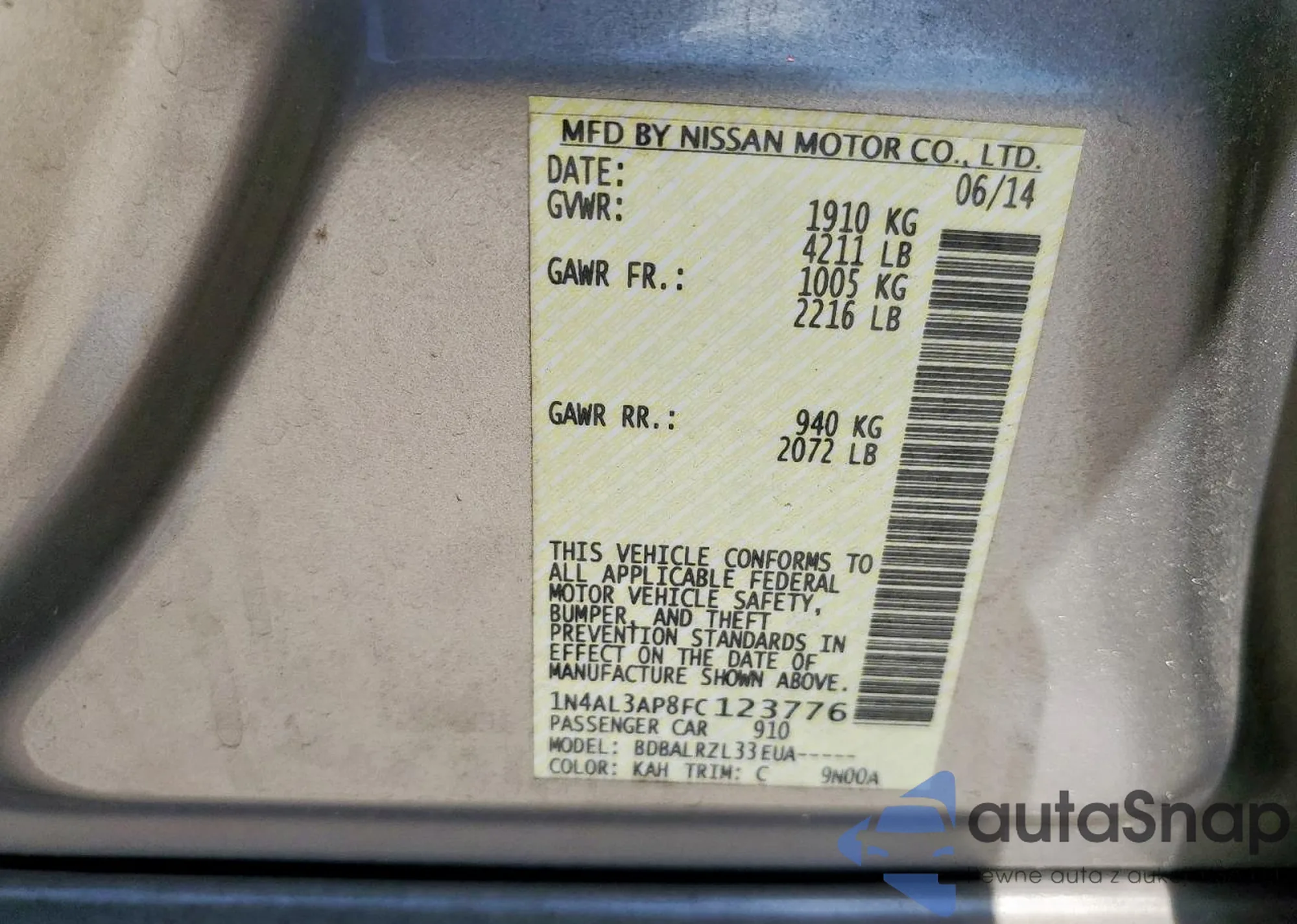 • VIN VNKKTUD38EA007248