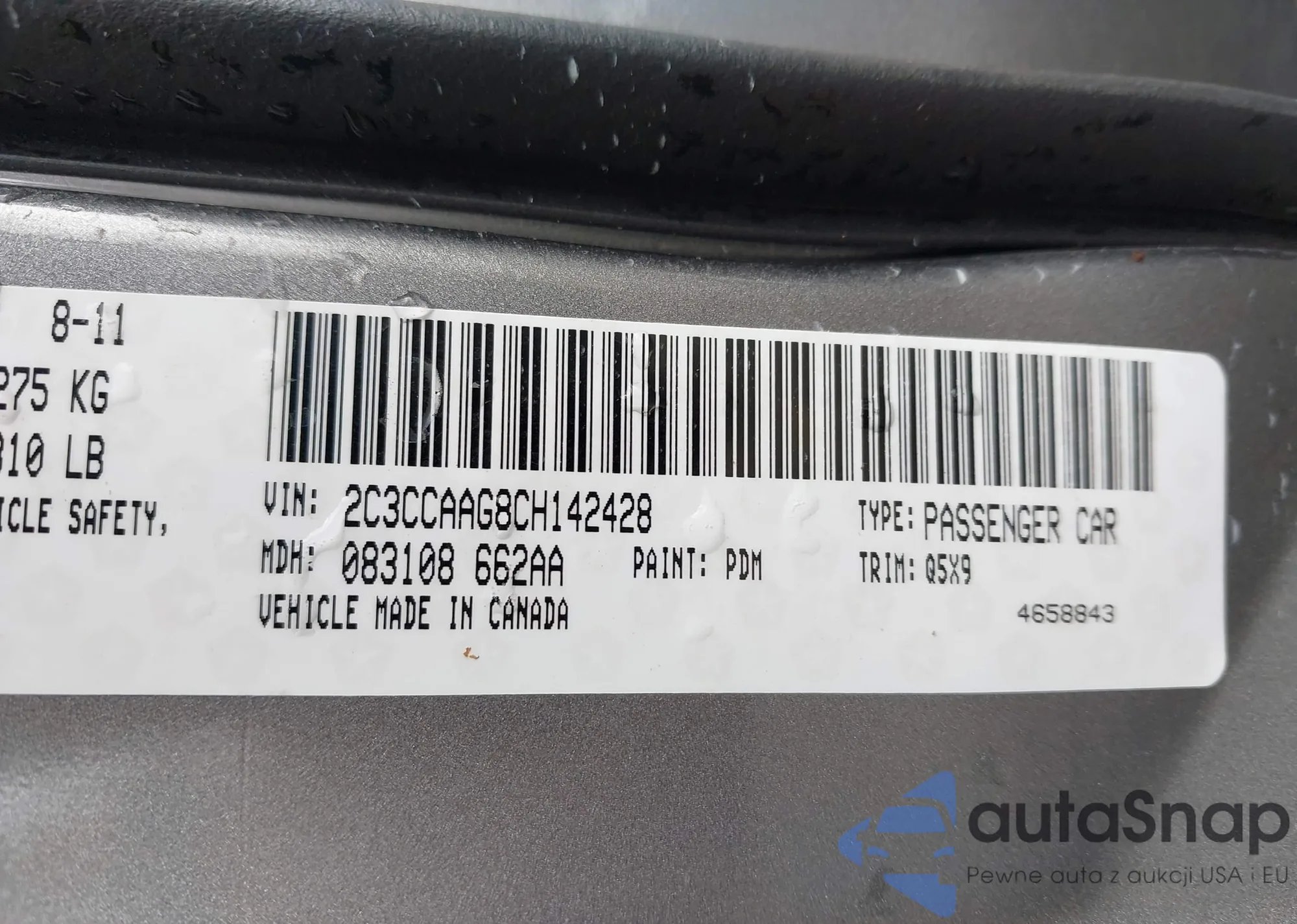 LOT: 43119024 VIN: 3N1AB8BV8MY302933