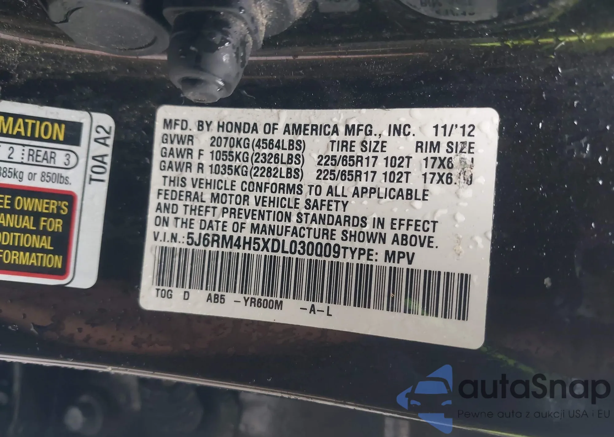 • VIN 5J6YH28766L004354