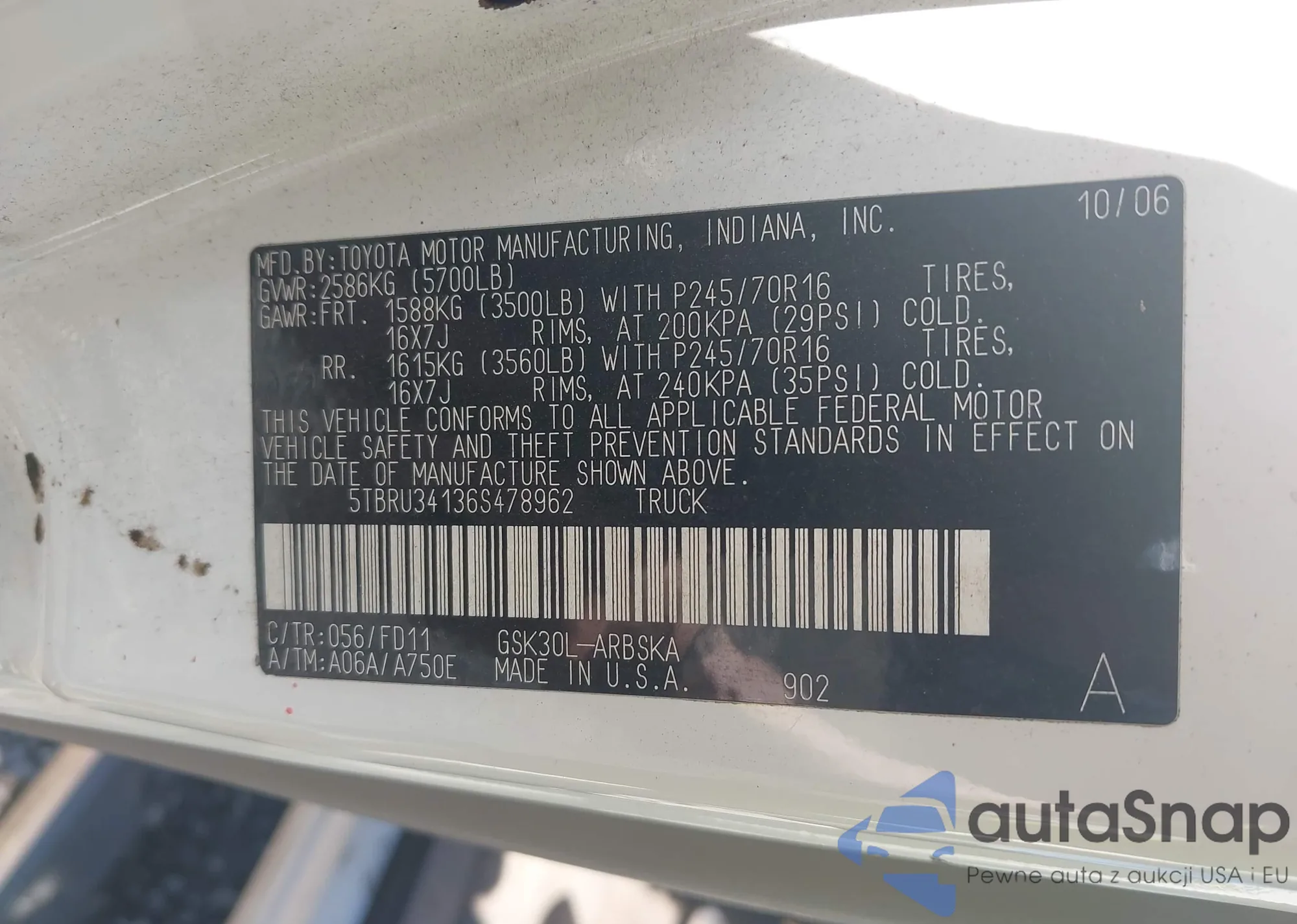 LOT: 43123344 VIN: 3TMAZ5CN5KM108077