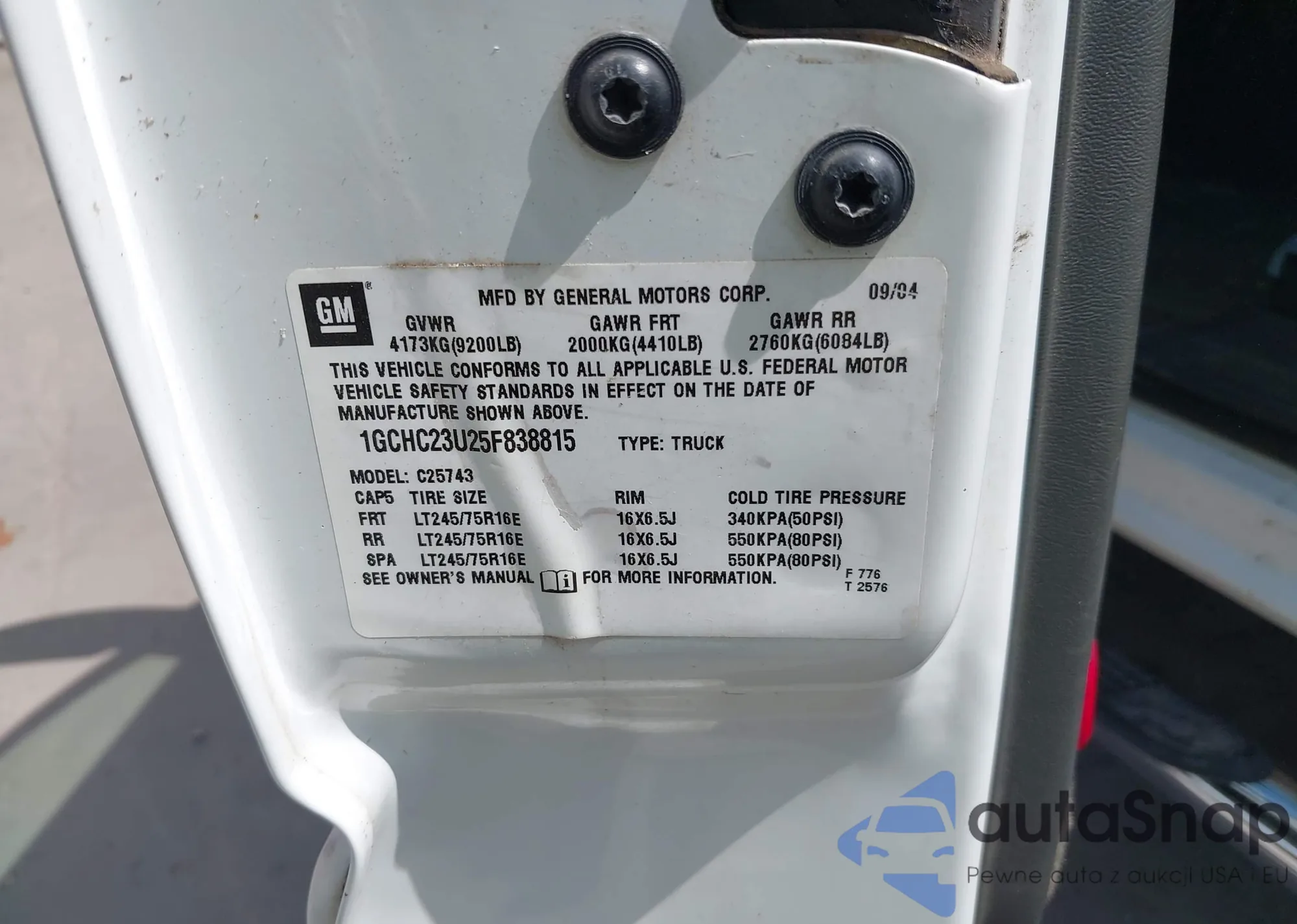 • VIN 1GCHC23U25F838815