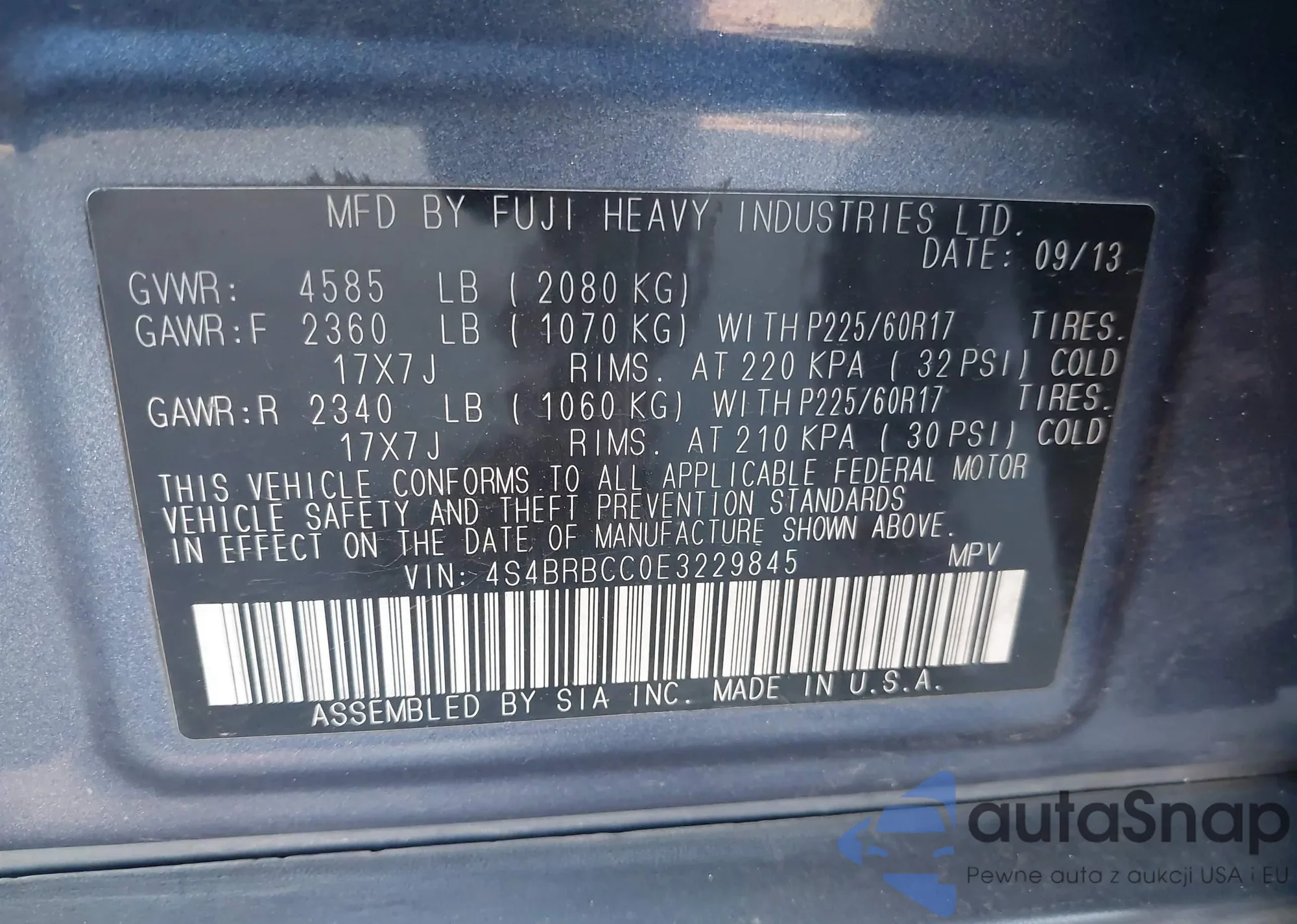 LOT: 43374950 VIN: 4S3BMBK68D3029681