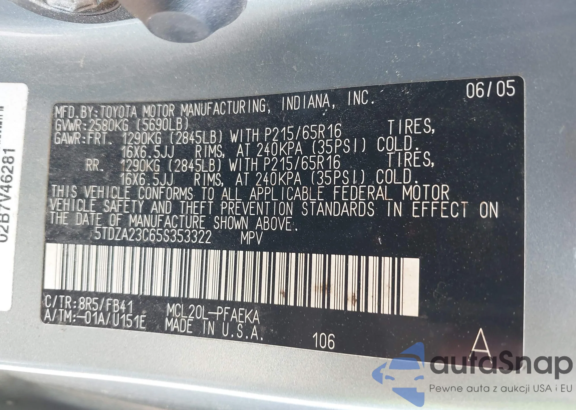 LOT: 43281248 VIN: 5TDZA23C65S353322