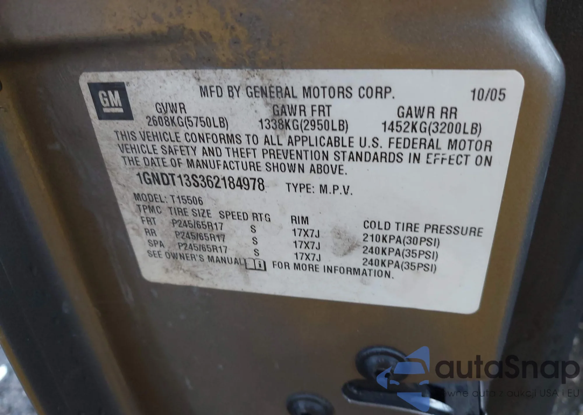 LOT: 43298449 VIN: 1GNDT13S362184978