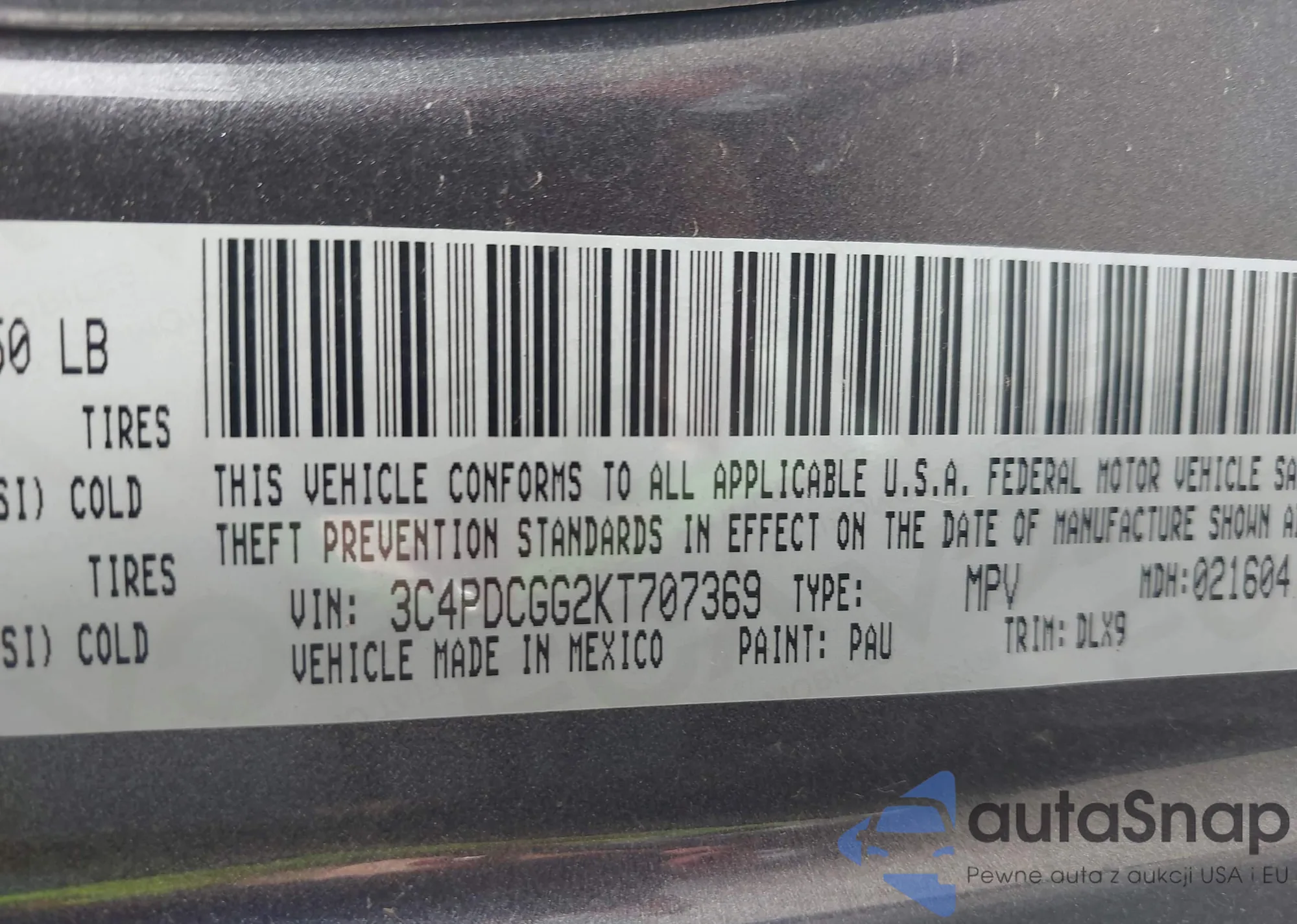 • VIN 3C4PDCGG2KT707369