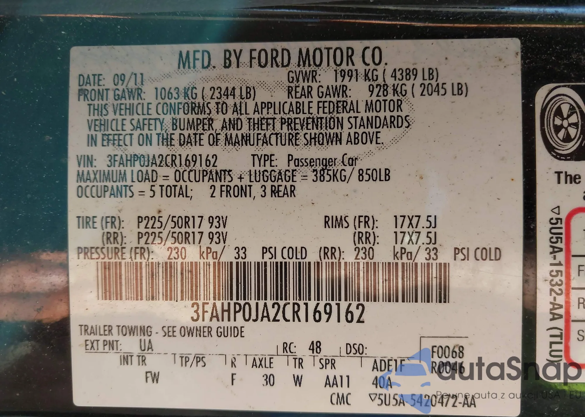 LOT: 43373462 VIN: 1HGCR2F3XFA249782