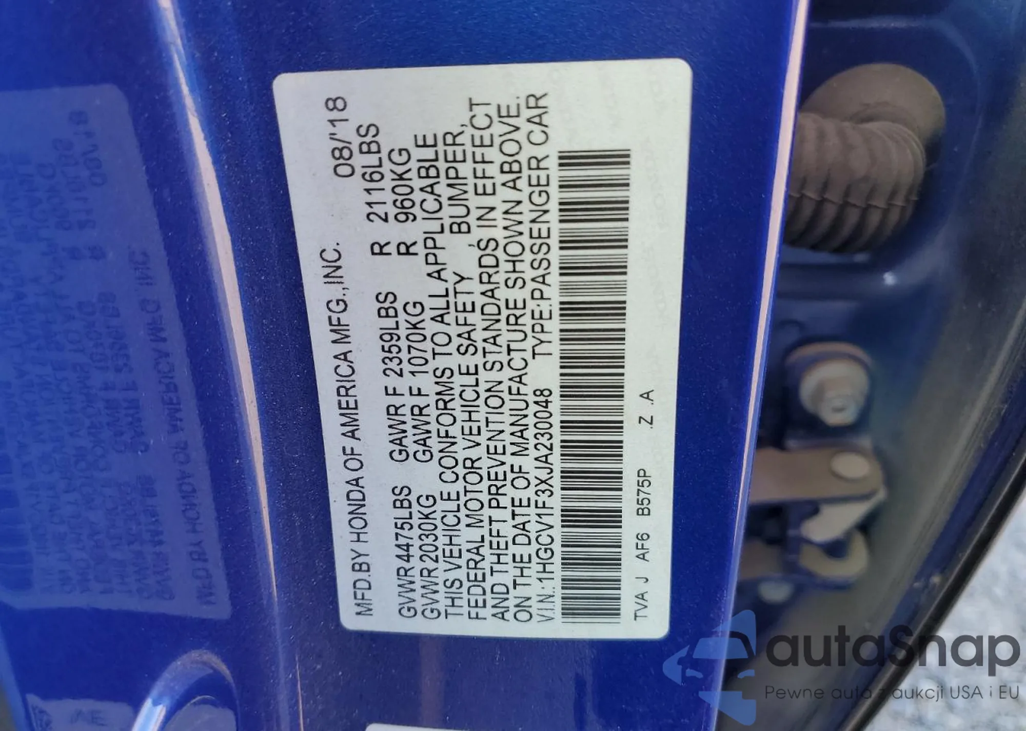 LOT: 86544855 VIN: 1HGCV1F3XJA230048
