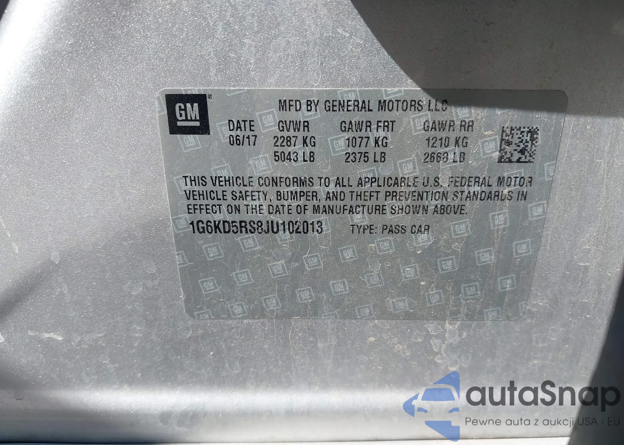 LOT: 43148816 VIN: 1G6KD5RS8JU102013